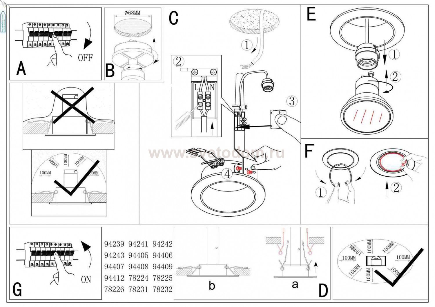 Данный размер указывает какое отверстие необходимо сделать для правильного монтажа. Зачастую светильники выбирают после ремонта и сделанных монтажных отверстий, тогда подбор осуществляется строго в размер +/- 2-5мм.