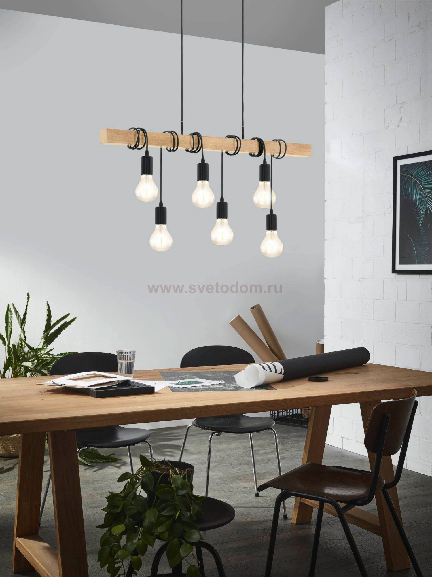 Подвес TOWNSHEND, 6х60W(E27), ?490, L1000, сталь, черный/дерево, коричневый применяется преимущественно в домашнем освещении с использованием стандартных выключателей и переключателей для сетей 220V.