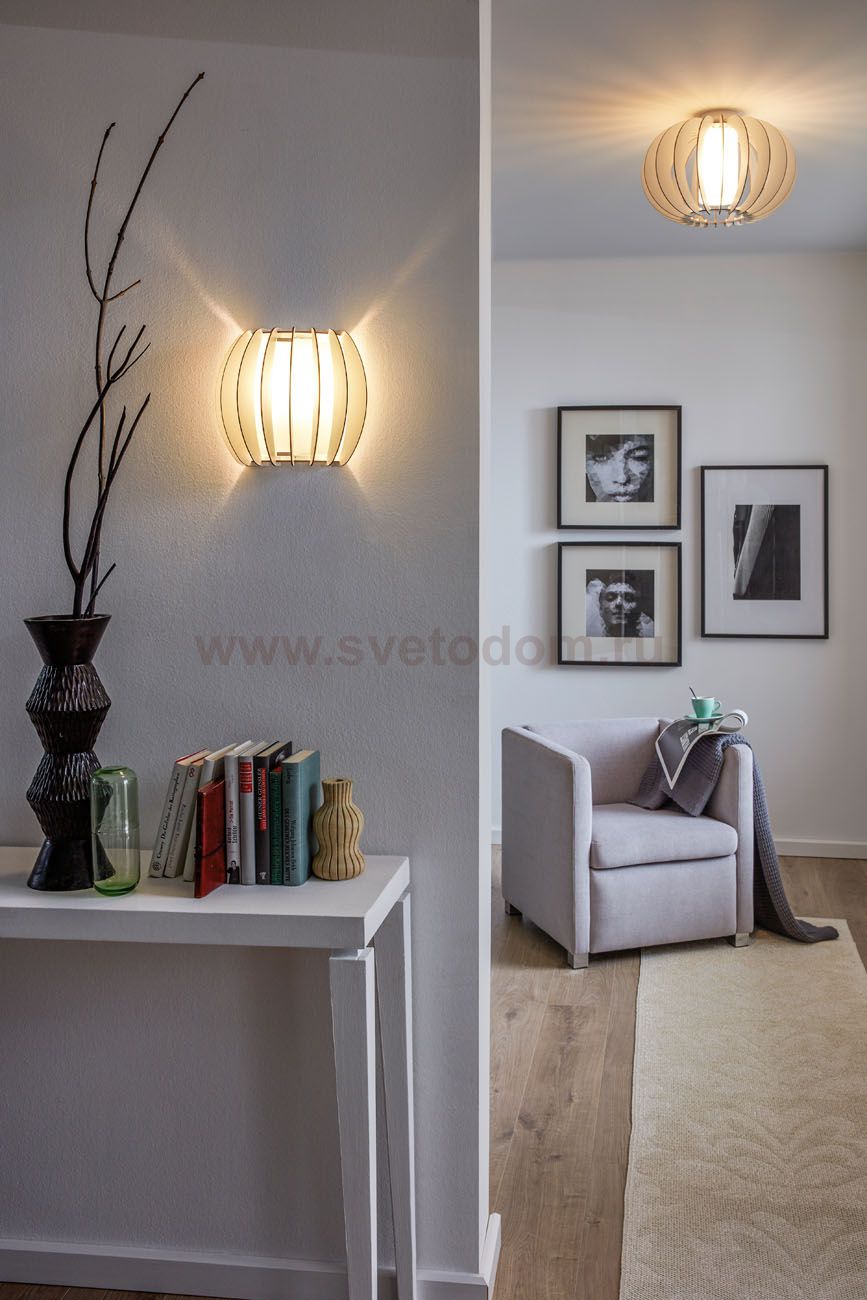 Бра STELLATO 2, 1X60W (E27), L285, H250, сталь, белый/дерево, стекло, белый применяется преимущественно в домашнем освещении с использованием стандартных выключателей и переключателей для сетей 220V.
