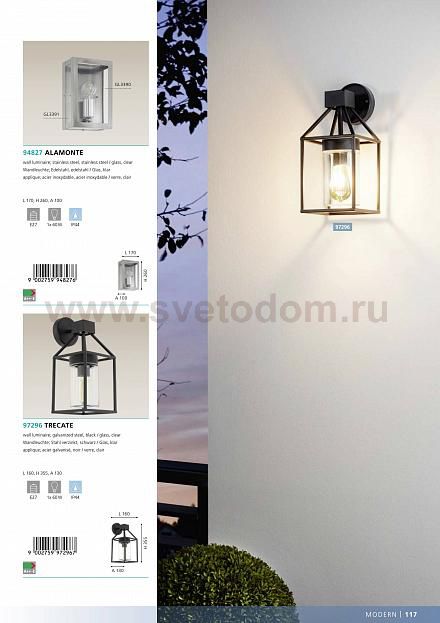 Уличный светильник наcтенный Eglo 97296 TRECATE не просто обеспечит качественное наружное освещение, но и станет украшением Вашего загородного участка. Модель выполнена из современных материалов и имеет влагозащитный корпус, благодаря которому ей не страшны осадки.
