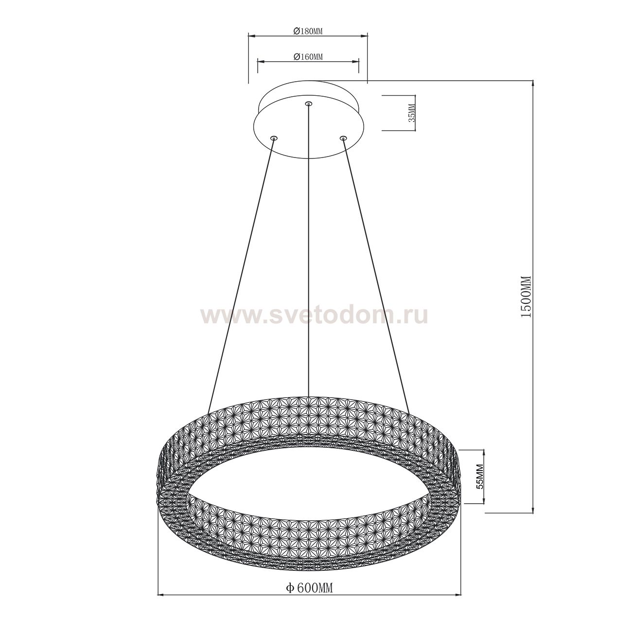 Подвесной светодиодный светильник 40Вт, 4400Лм, 3000/4000/6500К, Ra>80, изменение цветовой температуры, металл/акрил, хром/прозрачный