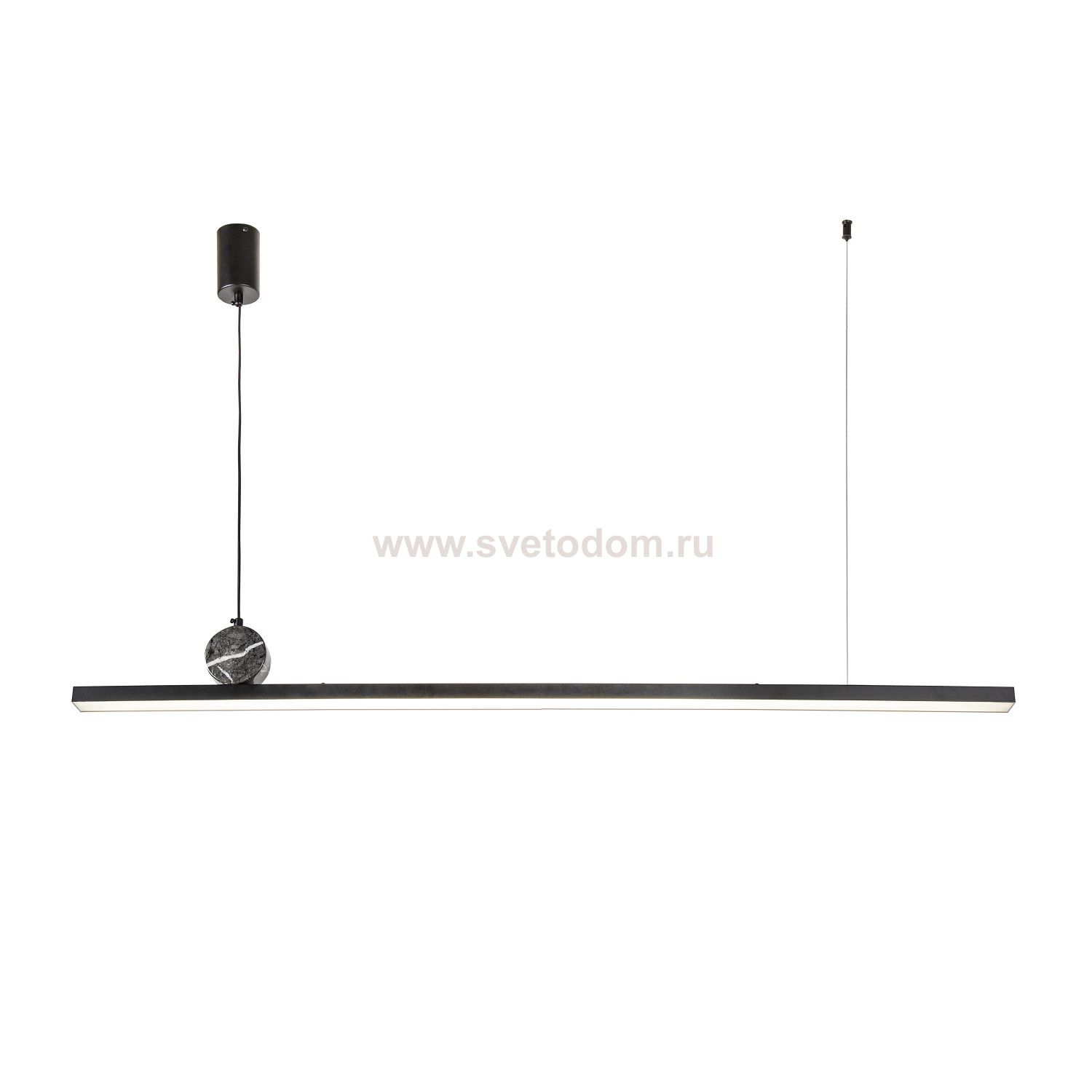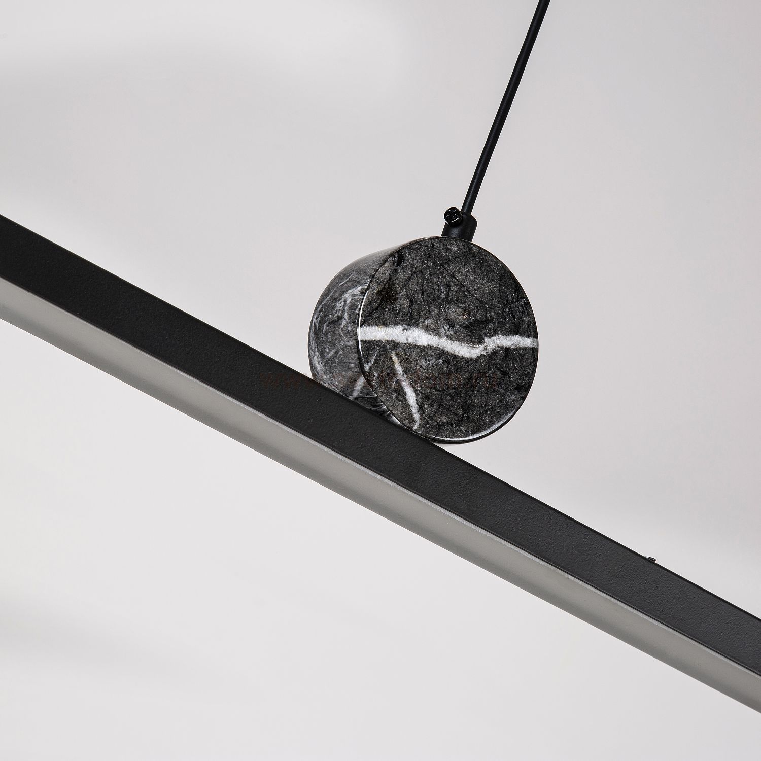 каркас матового черного цвета, рассеиватель из белого акрила, круглый декоративный элемент цвета черного мрамора, часть каркаса фиксируется тросиком д Декор