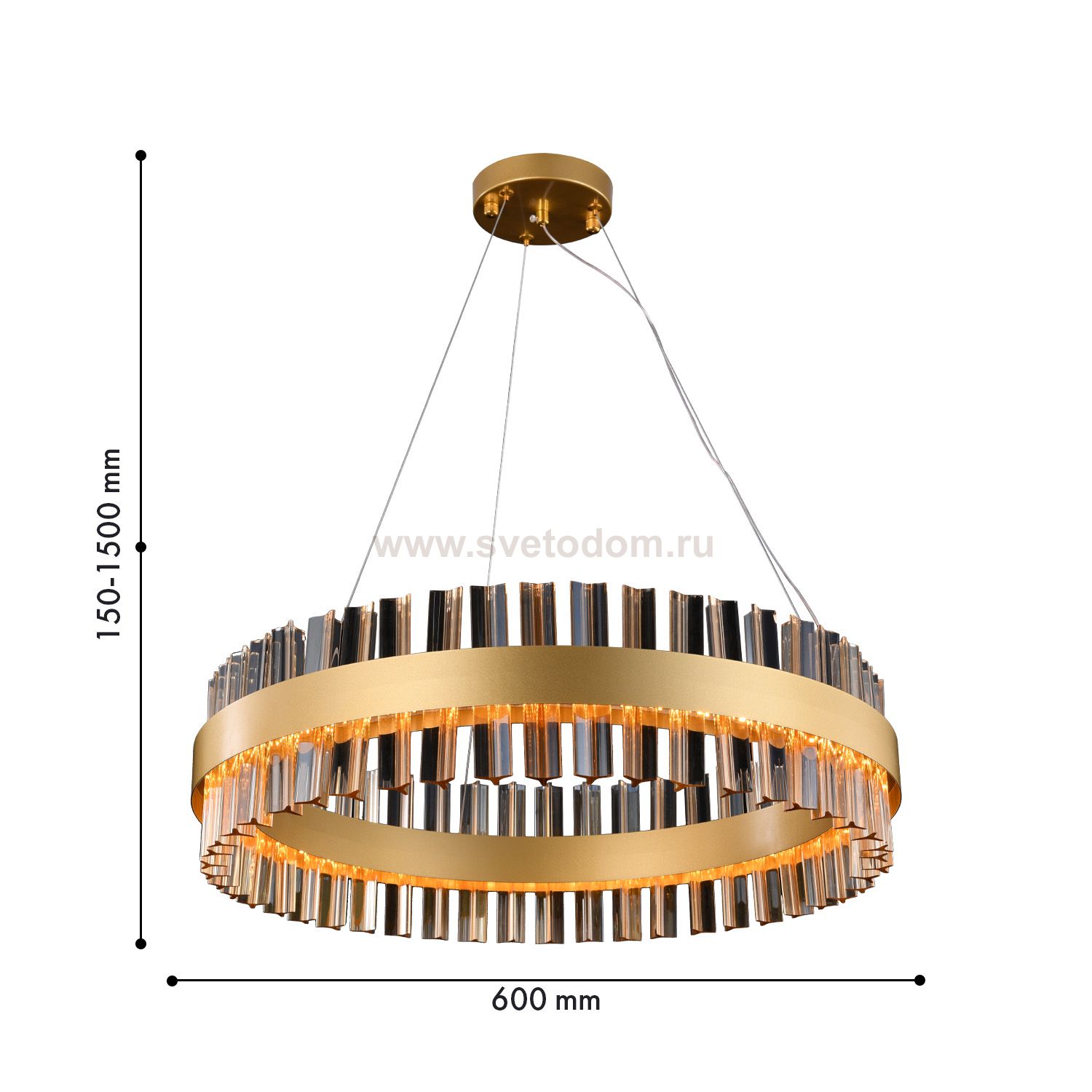 Подвесная кольцевая люстра диаметром 60 см сочетает янтарный хрусталь и золотую арматуру, регулируемая высота, встроенная лента LED Серия