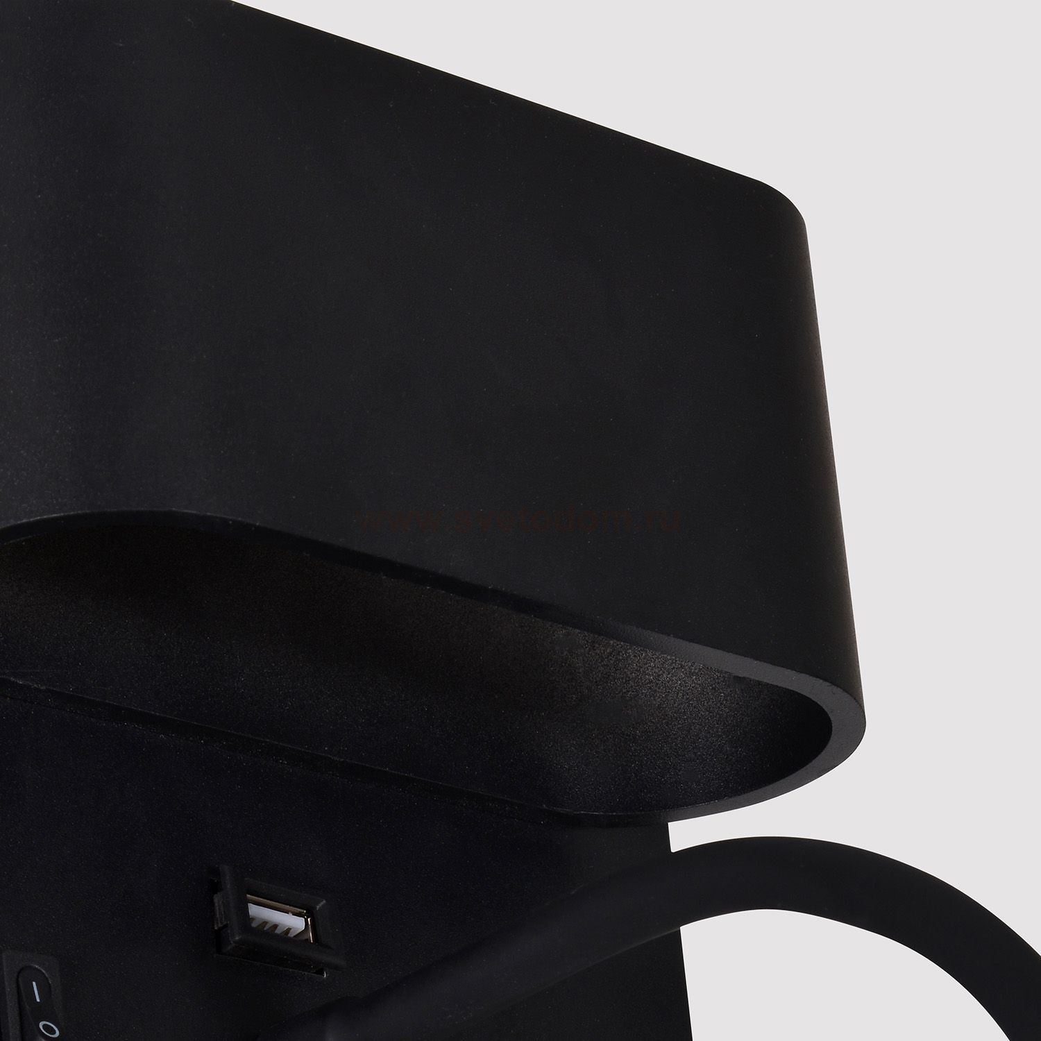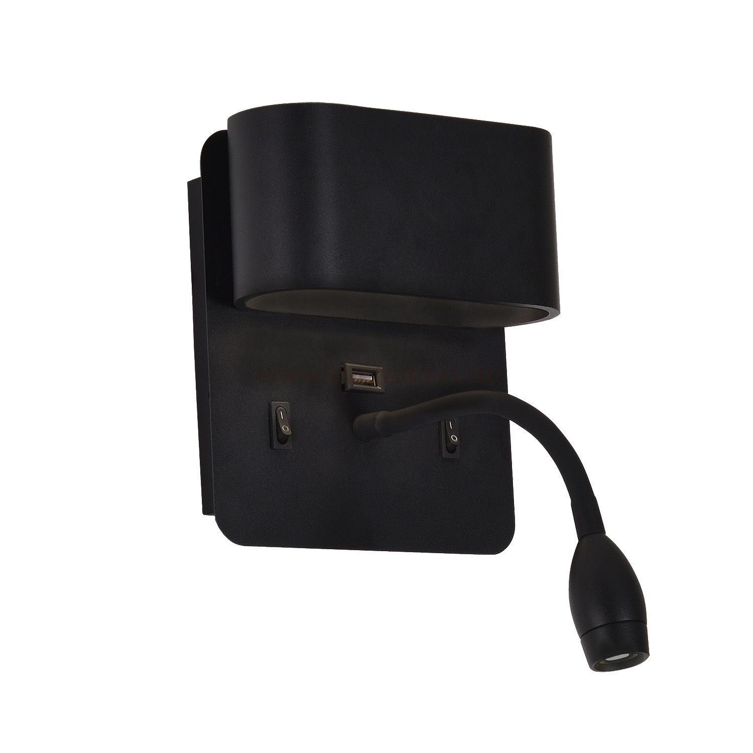 Настенный светильник с каркасом в черном цвете оснащен двумя источниками света: модуль LED внутри плафона и спот на гибком проводе, отдельные выключат Серия