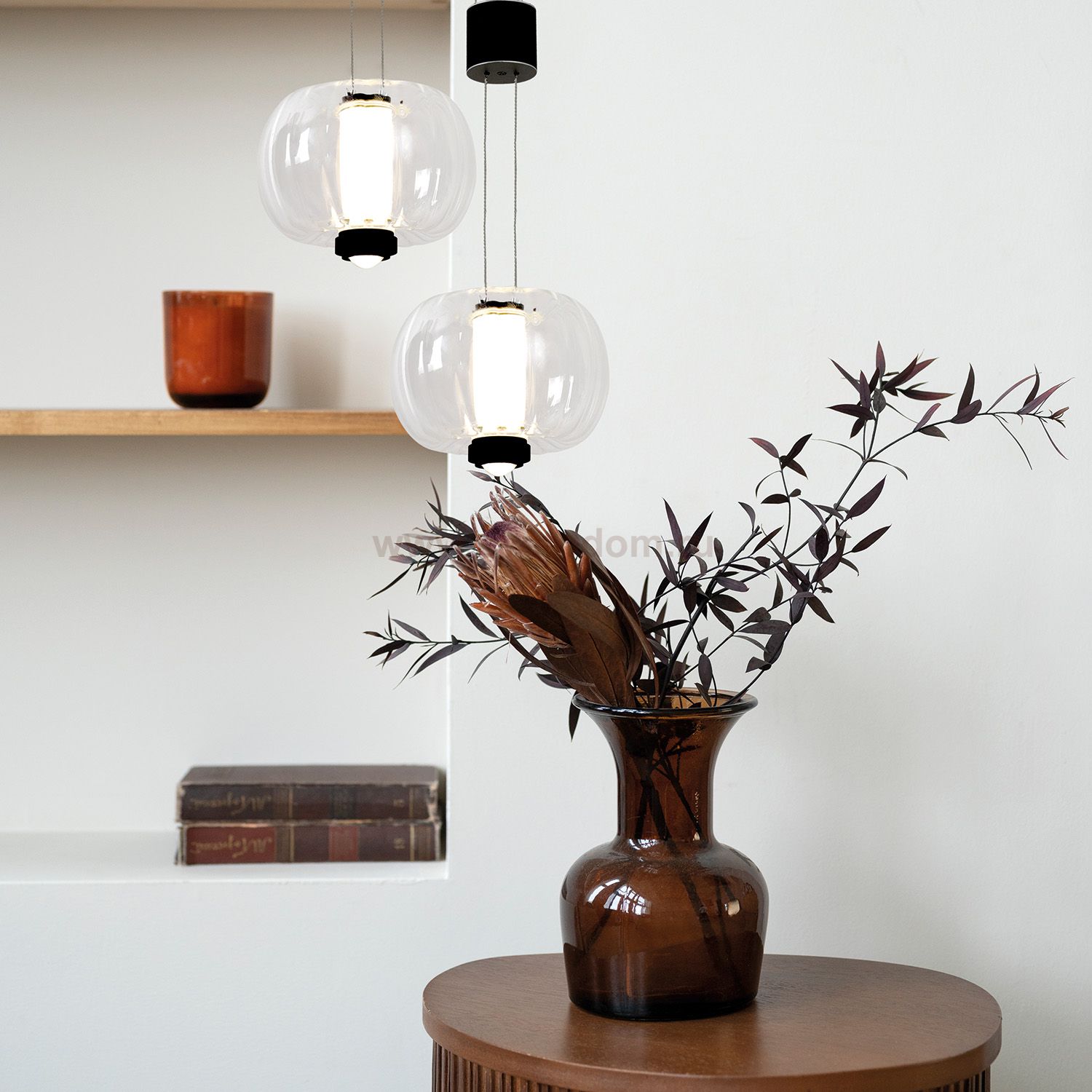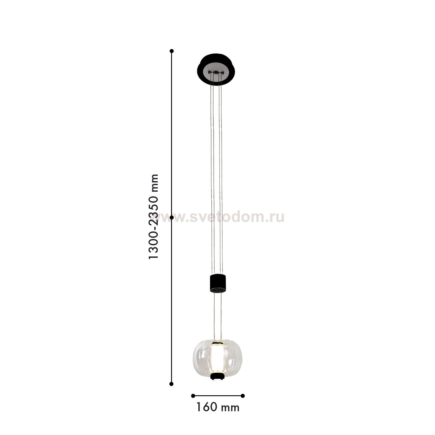 Подвес диаметром 16 см сочетает два цвета в отделке каркаса - черный с серебром, узорный выдувной плафон с дополнительным источником света внизу, лифт Серия