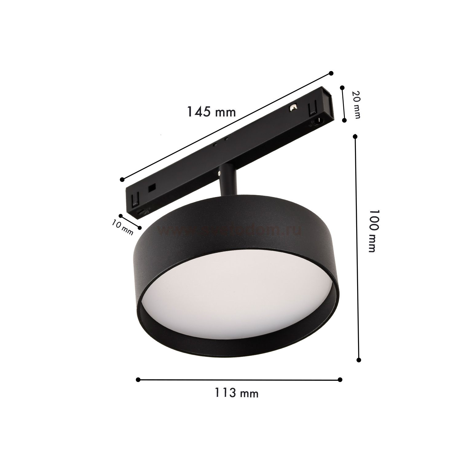Трековый поворотный светильник в плоском цилиндрическом корпусе черного цвета, угол рассеивания света 100°, угол поворота 60°, CRI>90 Серия