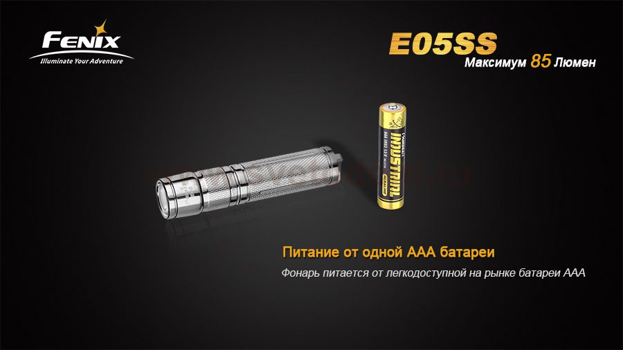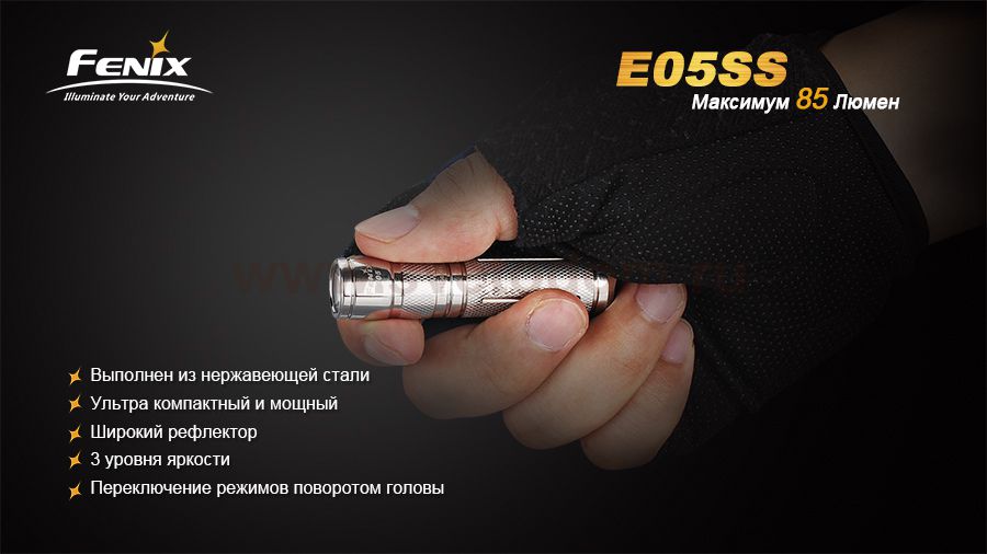 элемент питания 1xAAА Отзывы Фонарь Fenix E05 SS нержавеющая стальПока нет отзывов об этом товаре, напишите и он обязательно появится после модерации! Оставить свой отзывДругие товары магазина Фото