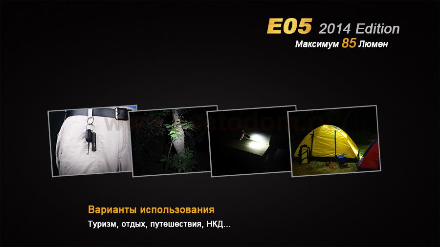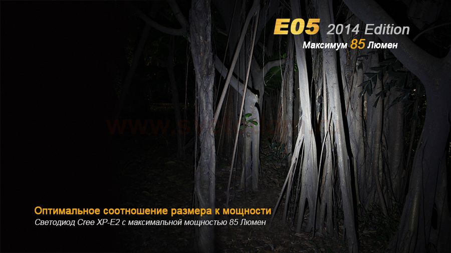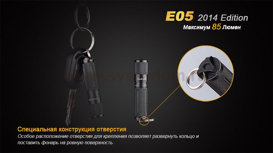 Компания Феникс обновила одну из своих предыдущих успешных моделей и выпустила фонарь Fenix E05 Cree XP-E2 R3 LED (2014 Edition). Этот осветительный прибор достойно справляется с задачами более крупных туристических фонарей, но при этом относится к категории фонариков-брелков. Ему доступны 3 режима работы с различным уровнем освещения: 8 люмен, 25 люмен и 85 люмен. Поскольку габариты Fenix E05 Cree XP-E2 R3 LED (2014 Edition) очень компактны (66,5 мм. в длину и 15 мм. в диаметре), он работает на 1 микропальчиковой батарейке. В него можно поставить Ni-MH перезаряжаемый аккумулятор или Alkaline батарею. Заряда от такого элемента питания достаточно для 15 часов света в экономном режиме или 45-60 в максимальном. Fenix E05 Cree XP-E2 R3 LED (2014 Edition) можно использовать как фонарь-брелок, ручной осветительный прибор и даже устанавливать как свечку на любой горизонтальной поверхности. Благодаря прочному и тщательно защищенному от влаги корпусу, этот фонарь будет полезен в любой ситуации и при какой угодно погоде. Особенности: современный диод Cree XP-E2 с гарантированным сроком службы 50 000 часов; 3 доступных уровня яркости; световой поток до 85 люмен; работа на основе батареи ААА; защита от воды согласно стандарту IPX-8; металлический корпус; удобное управление при помощи поворотного механизма.