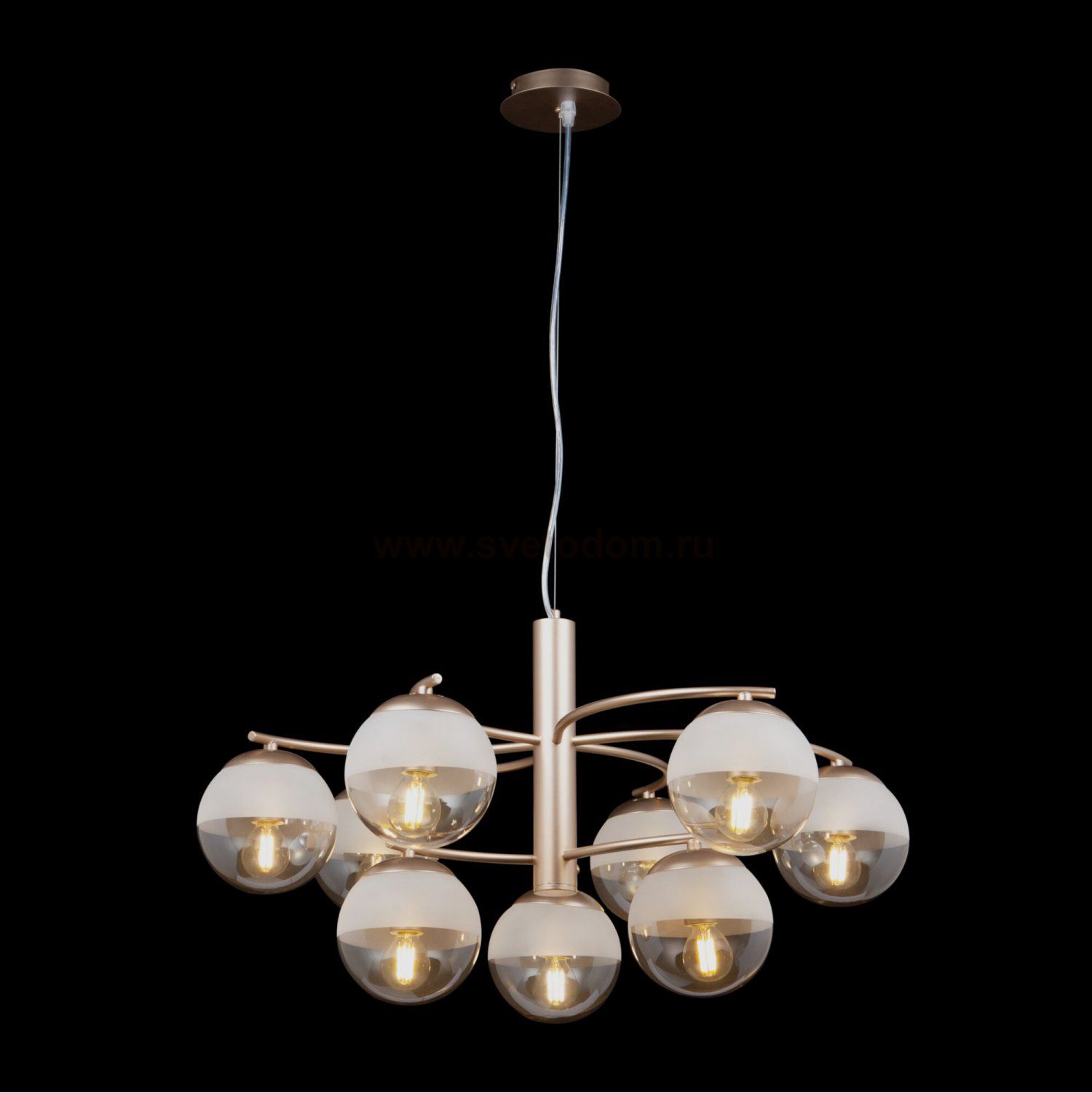Необычный дизайн светильников Ostin надолго остается в памяти. Арматура из металла цвета матового золота гармонично сочетается со стеклянными плафонами янтарного цвета. Сверху стекло плафонов матировано, чтобы скрыть патрон, однако, это не мешает прохождению света. Благодаря креплению на трос можно регулировать длину подвесных светильников. Минимальная высота составляет около 40 сантиметров, что позволяет использовать светильники в помещения с невысокими потолками. В серии представлены подвесные светильники на 12 и 9 ламп.