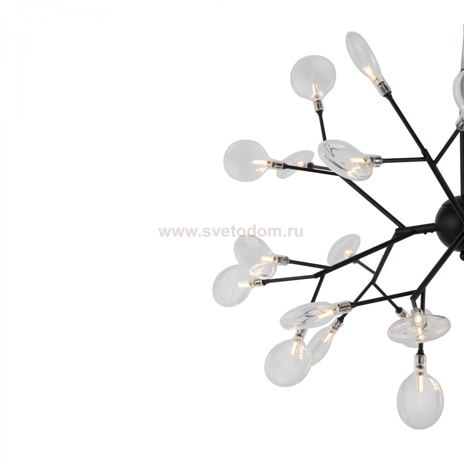 Материал арматуры – металл. Оттенки – черный, белый. Стеклянные плафоны оригинальной формы. Трендовый флористический дизайн. Источник света – лампа G4.