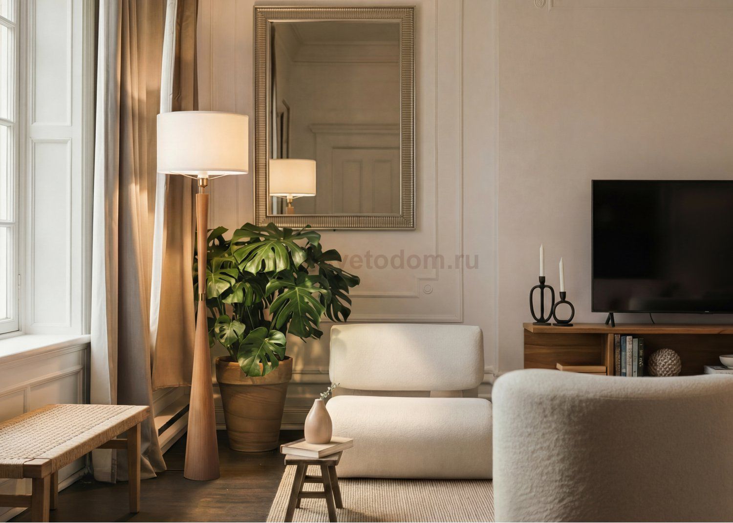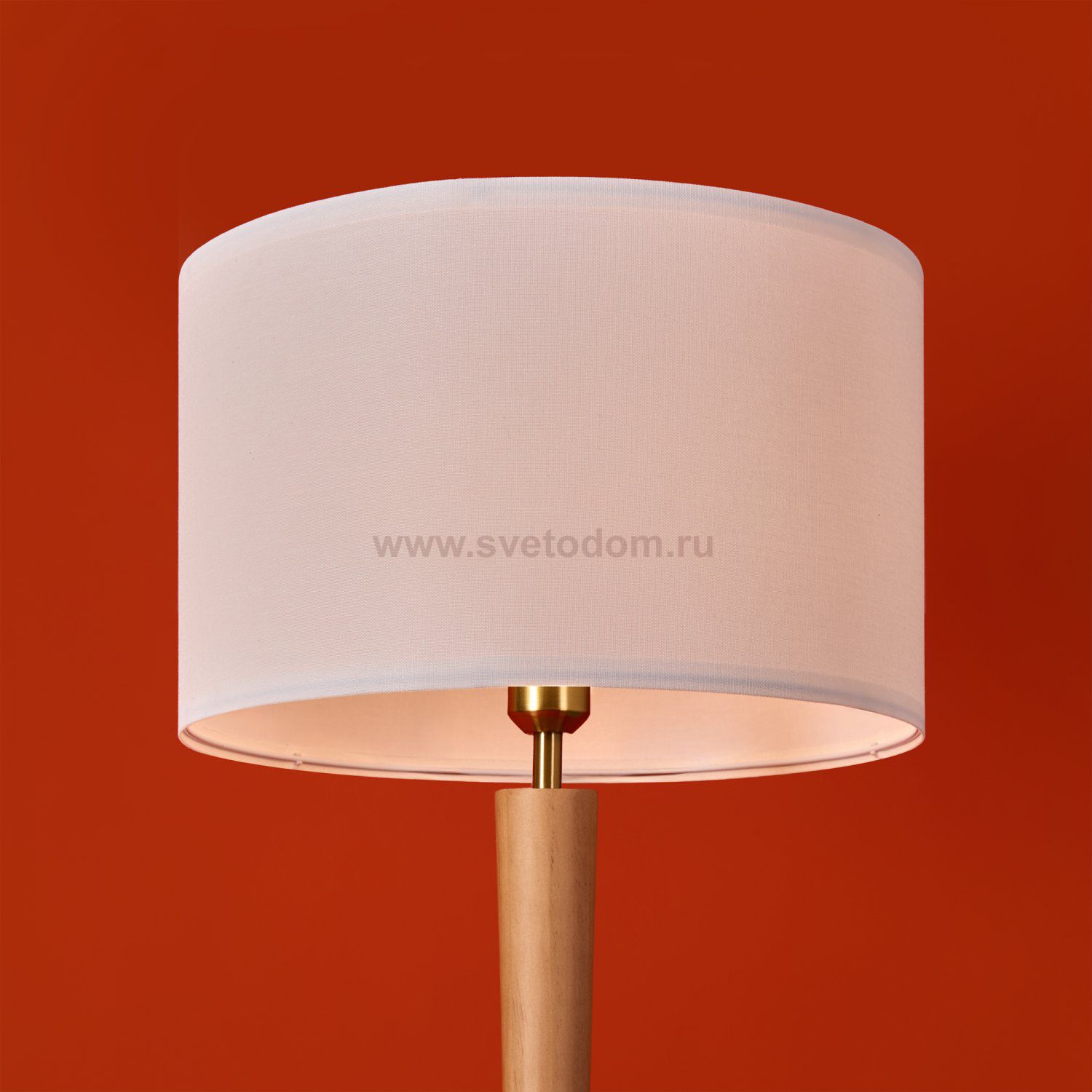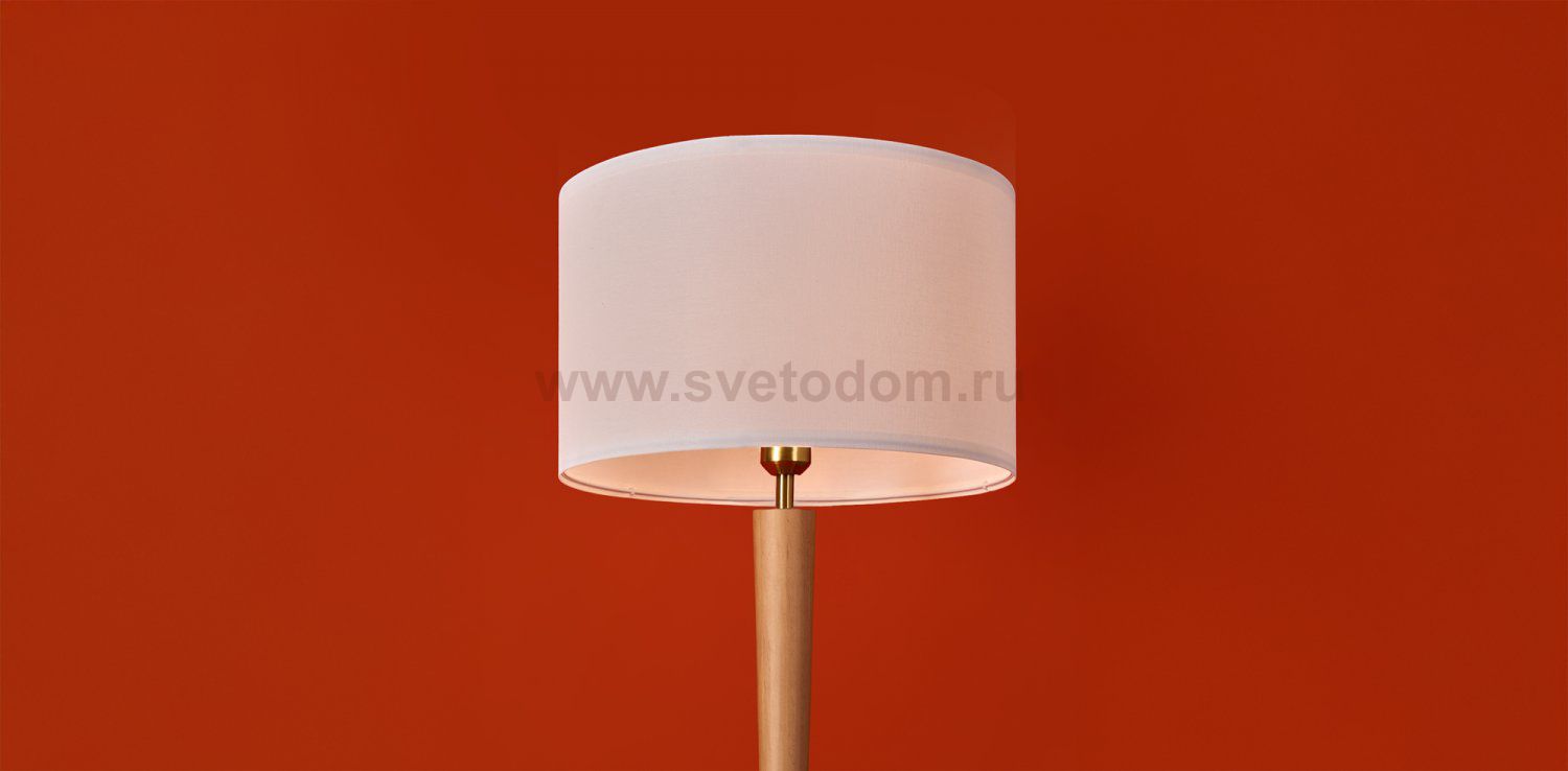 Арматура — металл. Деревянное разборное основание. Тканевый абажур белого цвета. Источник света — лампа E27 (не в комплекте).