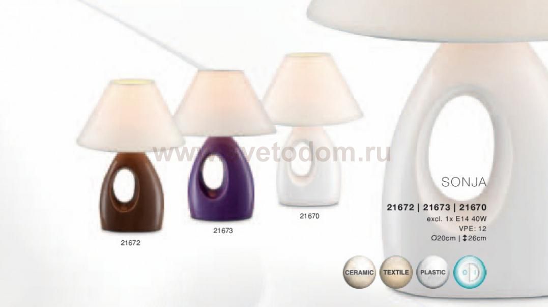 Настольная лампа – это не просто источник дополнительного освещения, но и оригинальный элемент декора. Его можно установить в спальне, гостиной, кабинете и других комнатах. Интернет-магазин «Светодом» предлагает настольные лампы разных стилей по доступным ценам. Благодаря большому ассортименту Вы обязательно найдете в нашем каталоге именно ту модель, которую искали. Настольная лампа Globo 21673 – прекрасный вариант для завершения интерьера. Ее можно включить одновременно с люстрой для более яркого освещения или без нее для создания уютной атмосферы, настраивающей на отдых. Купить настольную лампу Globo 21673 Вы можете с помощью виртуальной «Корзины» или по контактным номерам, указанным на сайте.