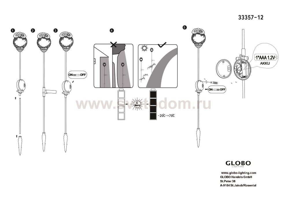 Обеспечение качественного уличного освещения – важная задача для владельцев коттеджей. Компания «Светодом» предлагает современные светильники, которые порадуют Вас отличным исполнением. В нашем каталоге представлена продукция известных производителей, пользующихся популярностью благодаря высокому качеству выпускаемых товаров. Уличный светильник Globo 33357-12 не просто обеспечит качественное освещение, но и станет украшением Вашего участка. Модель выполнена из современных материалов и имеет влагозащитный корпус, благодаря которому ей не страшны осадки. Купить уличный светильник Globo 33357-12, представленный в нашем каталоге, можно с помощью онлайн-формы для заказа. Чтобы задать имеющиеся вопросы, звоните нам по указанным телефонам.
