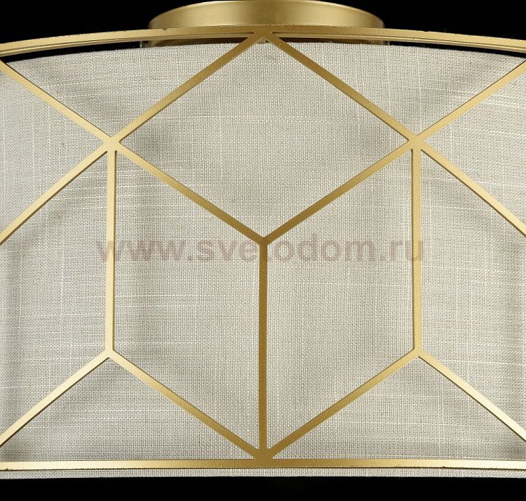 Арматура из металла золотого цвета. Абажур – натуральный лен на ПВХ. Металли ческий орнамент опоясывает абажур. Льняной рассеиватель.