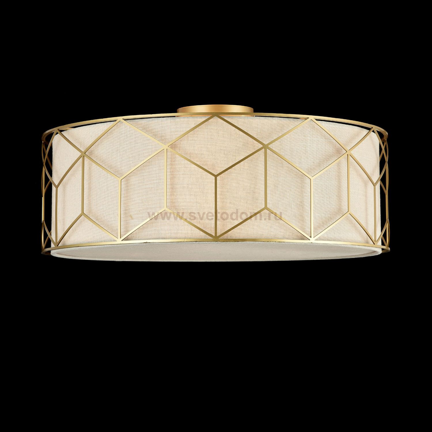 Арматура из металла золотого цвета. Абажур – натуральный лен на ПВХ. Металли ческий орнамент опоясывает абажур. Льняной рассеиватель.