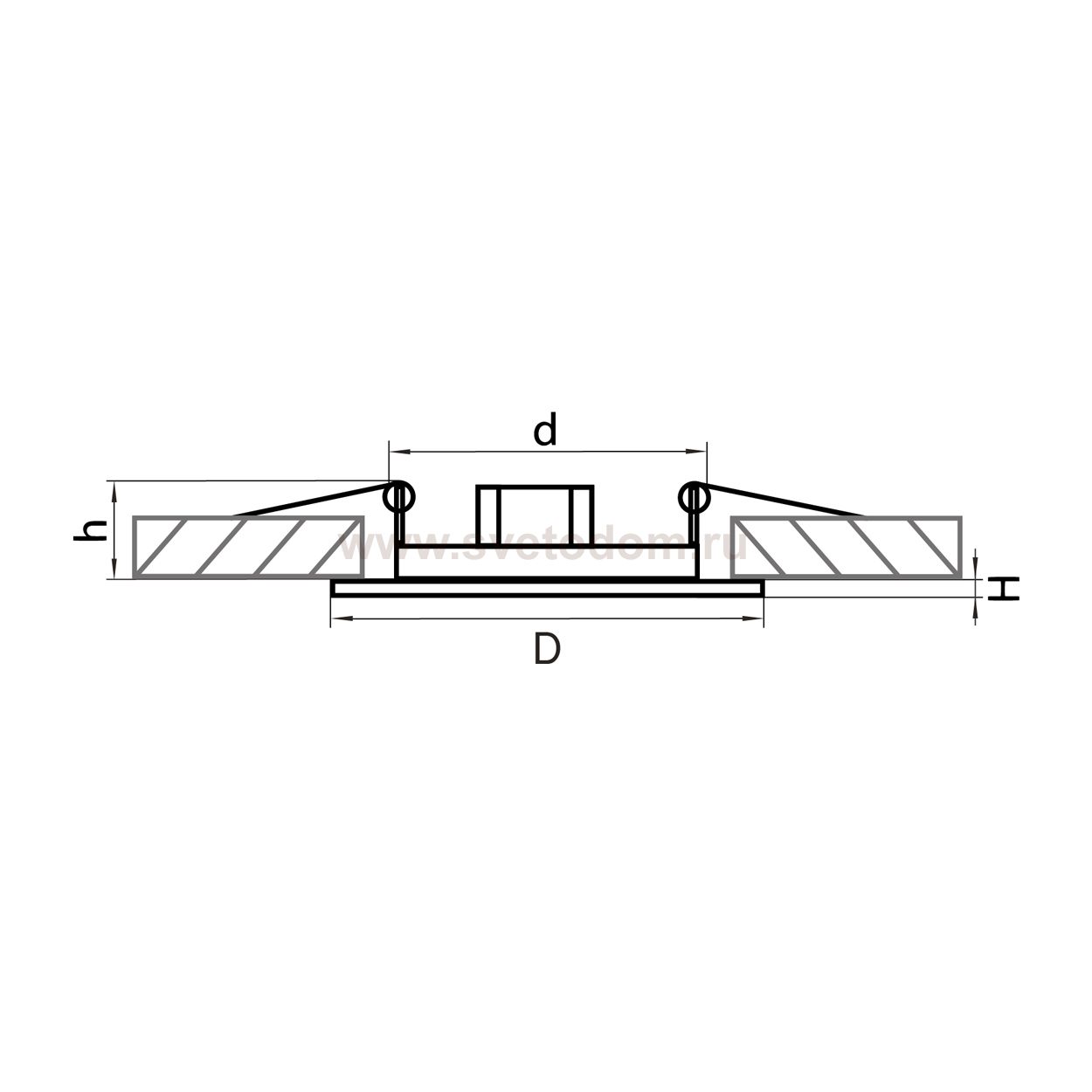 Данный размер указывает какое отверстие необходимо сделать для правильного монтажа. Зачастую светильники выбирают после ремонта и сделанных монтажных отверстий, тогда подбор осуществляется строго в размер +/- 2-5мм.