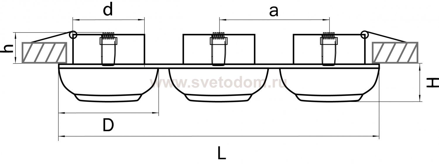 Данный размер указывает какое отверстие необходимо сделать для правильного монтажа. Зачастую светильники выбирают после ремонта и сделанных монтажных отверстий, тогда подбор осуществляется строго в размер +/- 2-5мм.