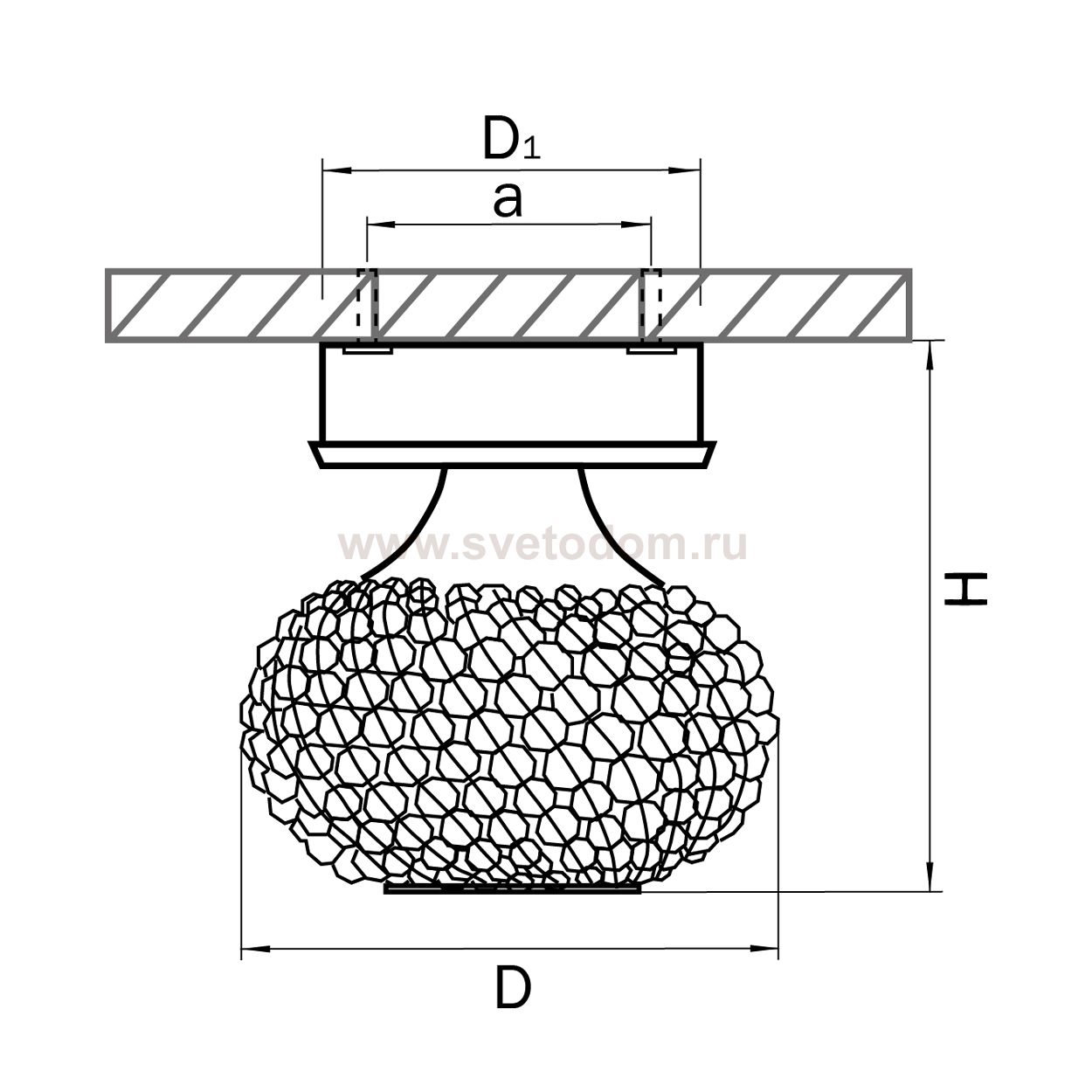 Крепление: D75 a68; Внешние габариты: D115 H100; Материал - основание/плафон: металл / Crystalline; Цвет-основание/плафон: хром/прозрачный; Лампа: 220В G9 max 40Вт;