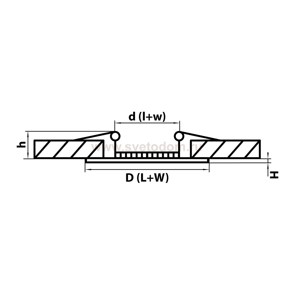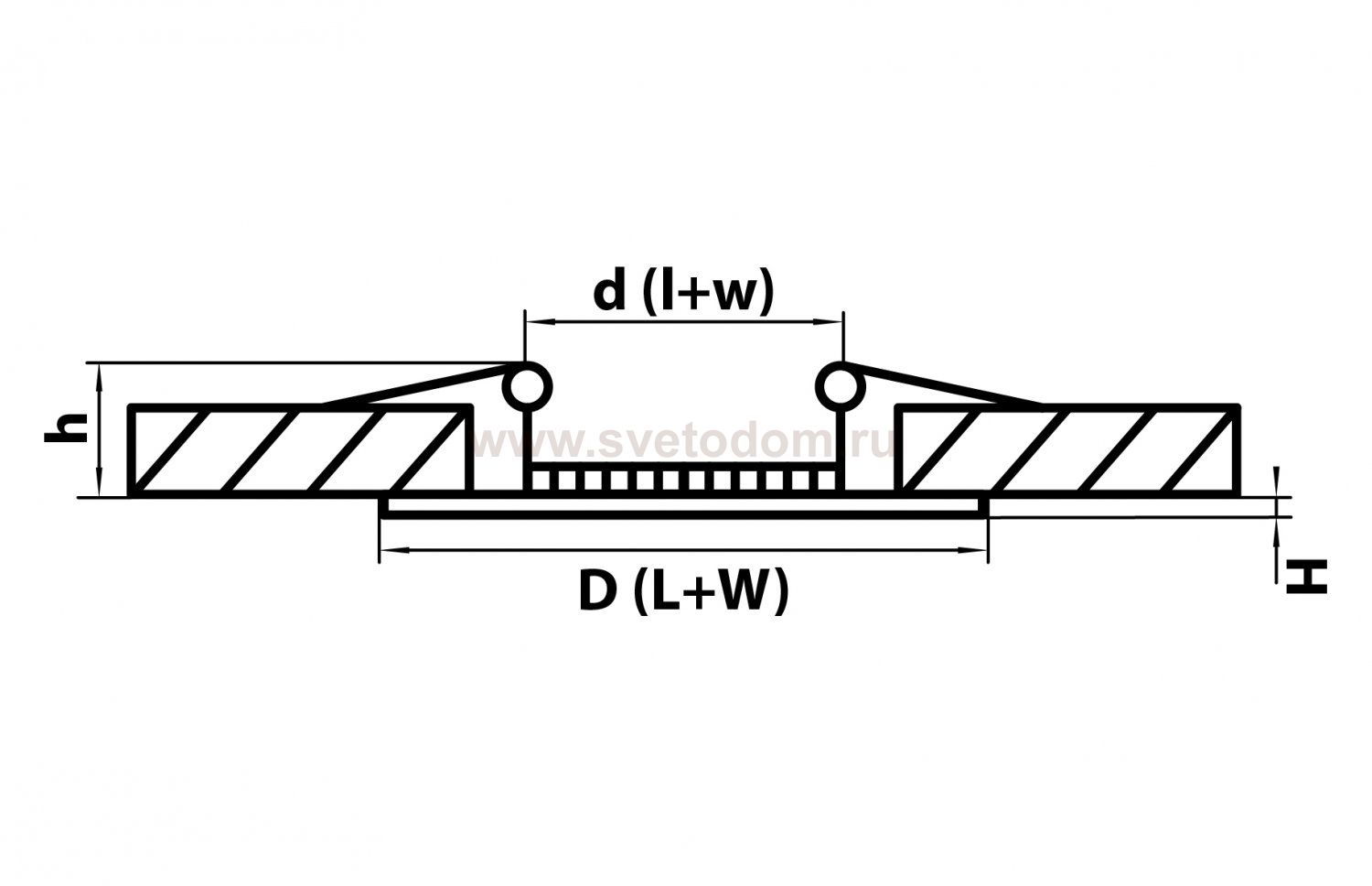 Данный размер указывает какое отверстие необходимо сделать для правильного монтажа. Зачастую светильники выбирают после ремонта и сделанных монтажных отверстий, тогда подбор осуществляется строго в размер +/- 2-5мм.