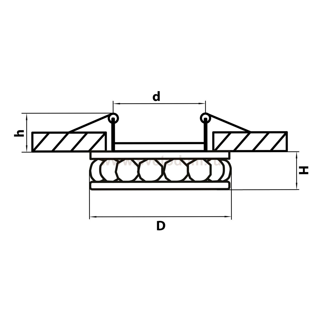 Данный размер указывает какое отверстие необходимо сделать для правильного монтажа. Зачастую светильники выбирают после ремонта и сделанных монтажных отверстий, тогда подбор осуществляется строго в размер +/- 2-5мм.