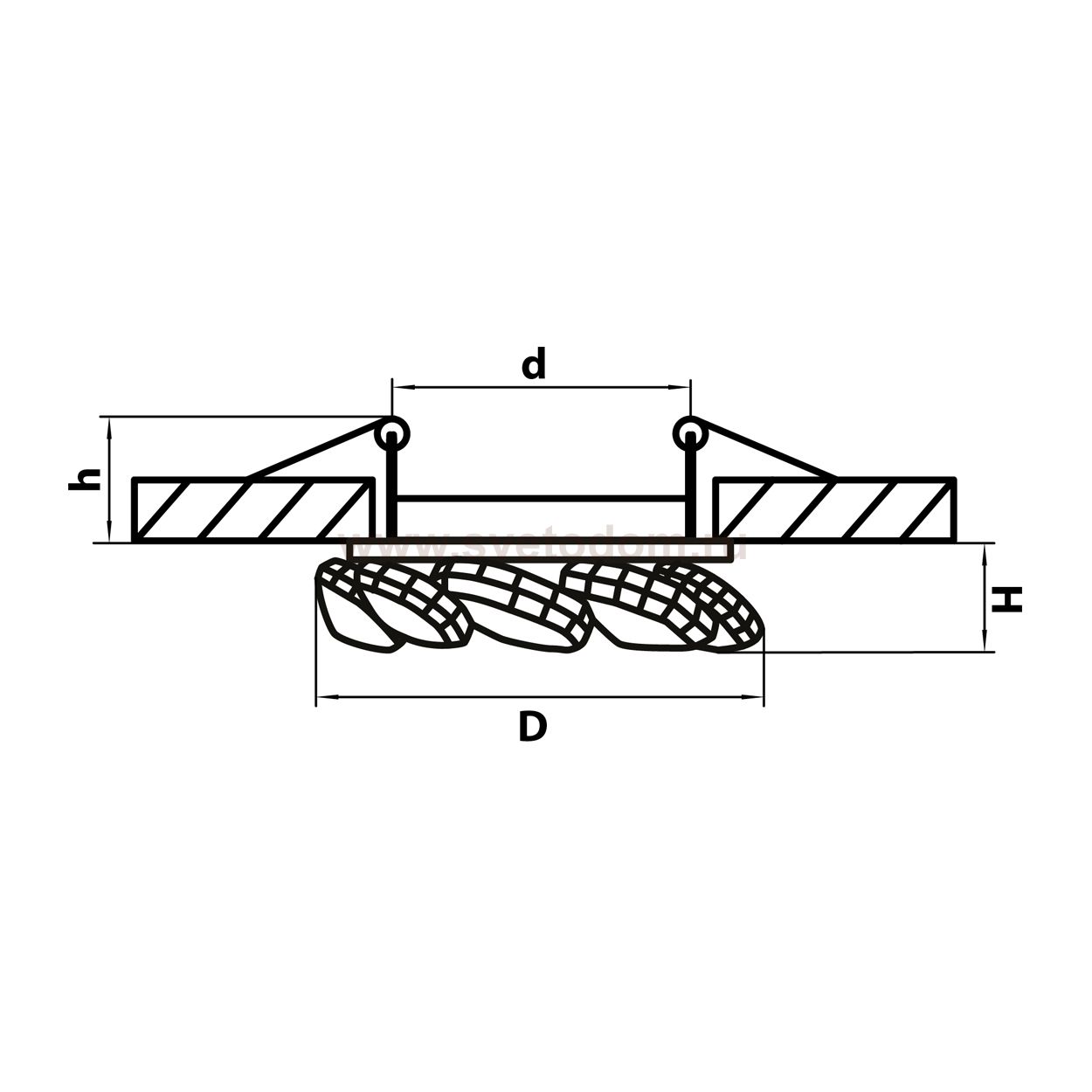 Данный размер указывает какое отверстие необходимо сделать для правильного монтажа. Зачастую светильники выбирают после ремонта и сделанных монтажных отверстий, тогда подбор осуществляется строго в размер +/- 2-5мм.