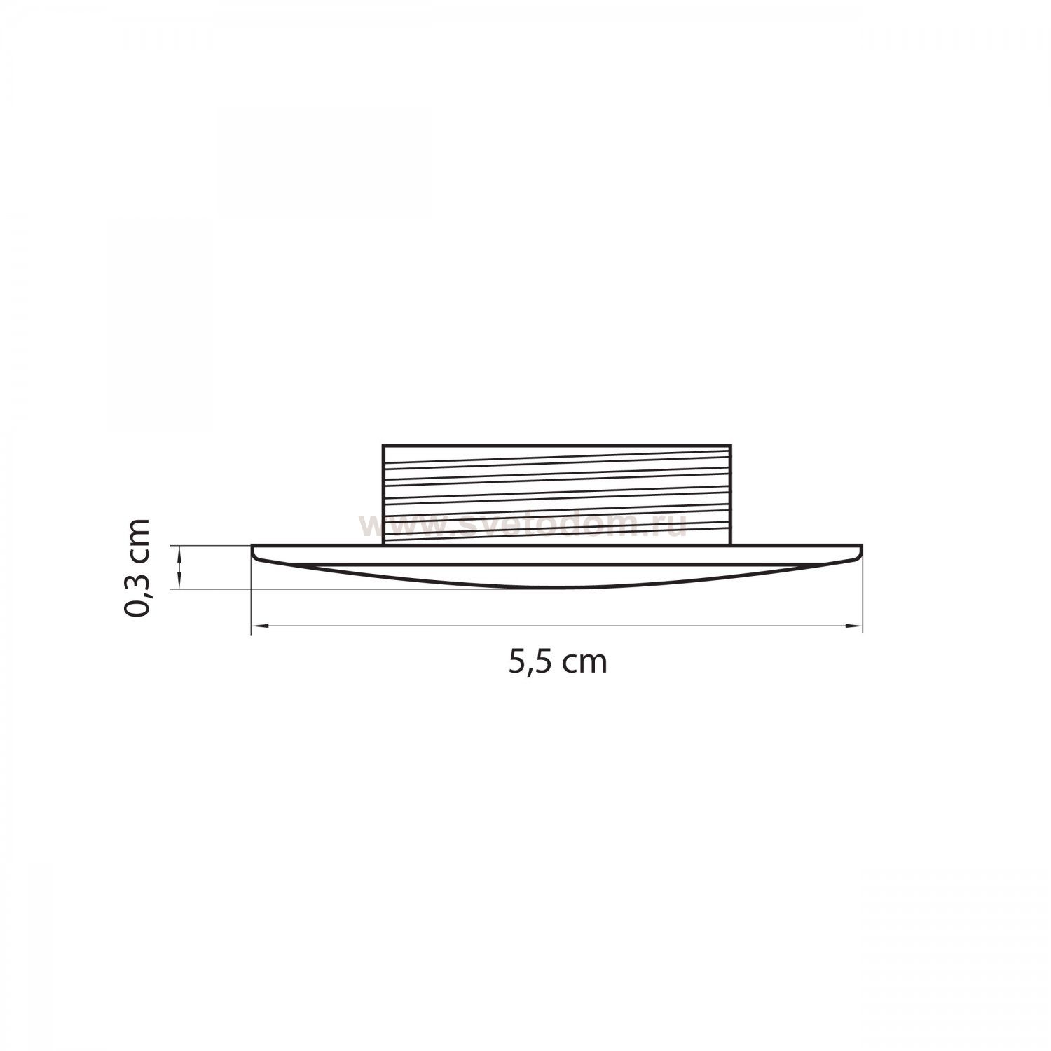 Врезное отверстие: d h; Внешние габариты: L55 W55 H3; Материал - основание/плафон: металл/стекло; Цвет-основание/плафон: латунь;