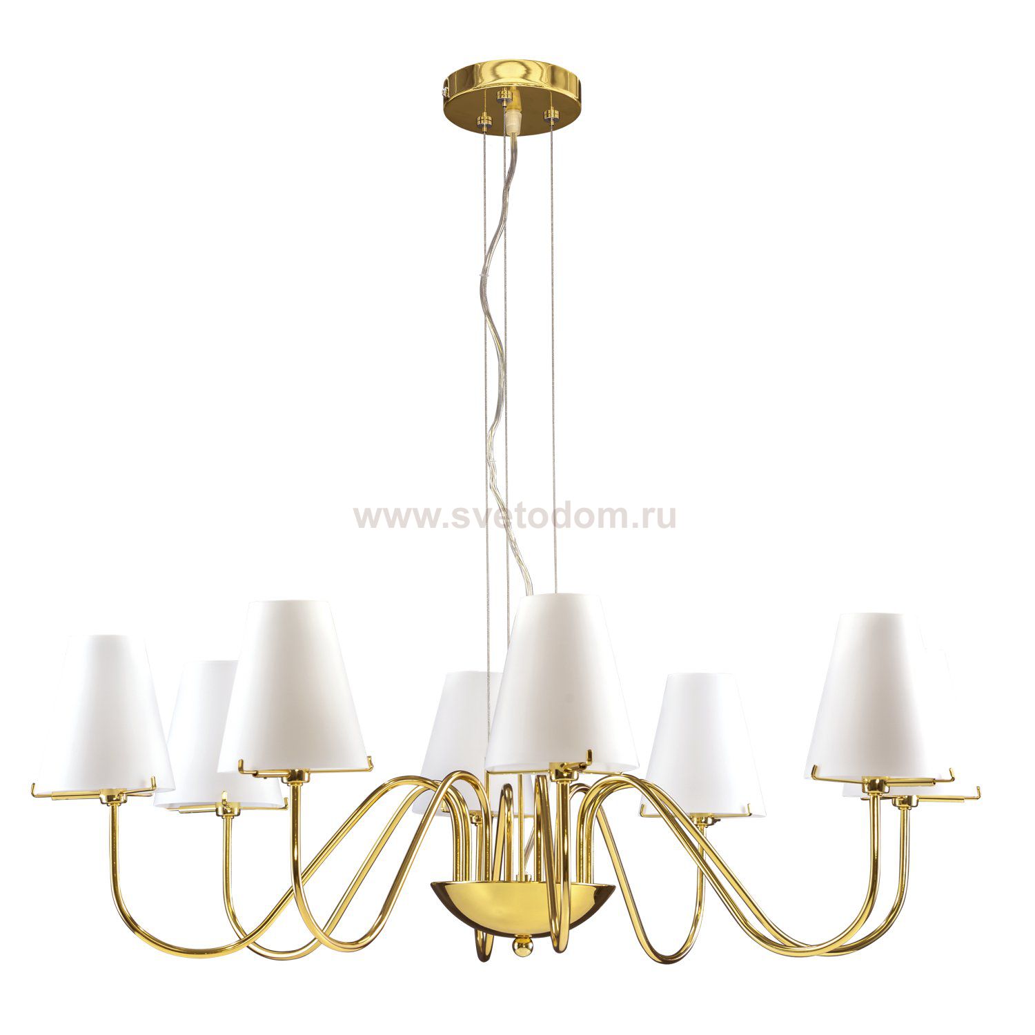 Высота min-max (см): 35-135 ; Ширина (см): 30; Вес (кг): 3,8; Кол-во ламп: 8xG9; Мощность max (W): 40; Цвет основания/цвет стекла или абажура: Gold/ White glass;