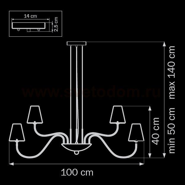 Максимальная потребляемая мощность лампы, которую можно использовать в люстре.