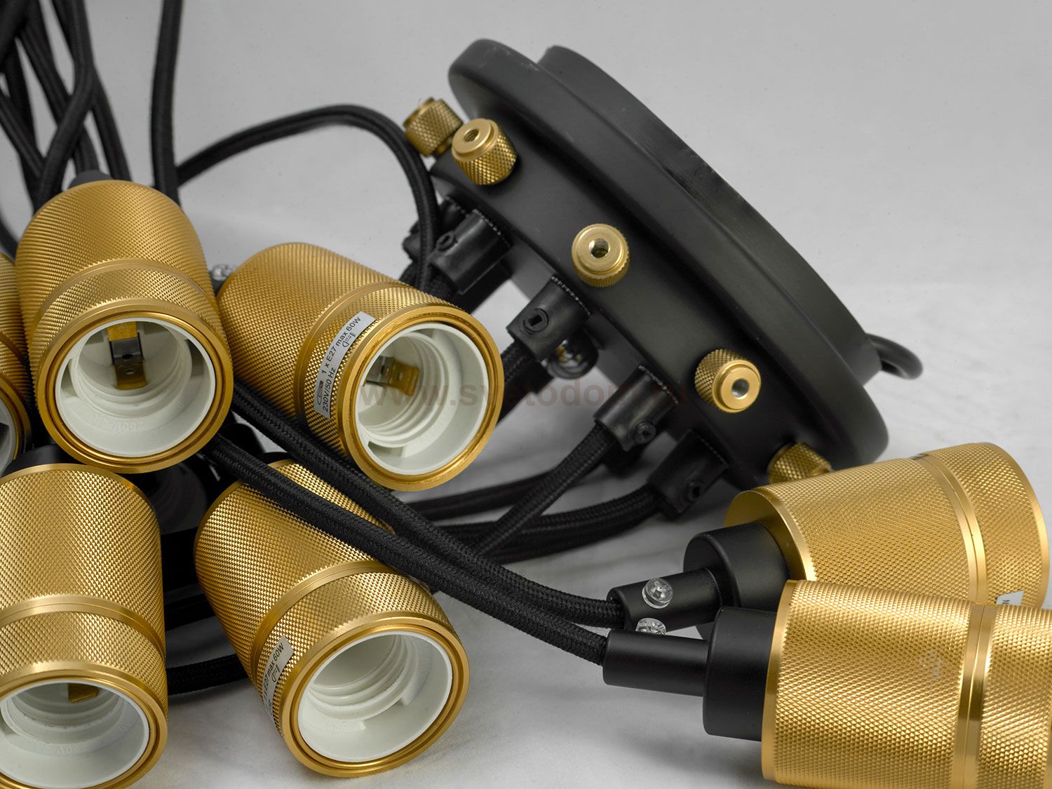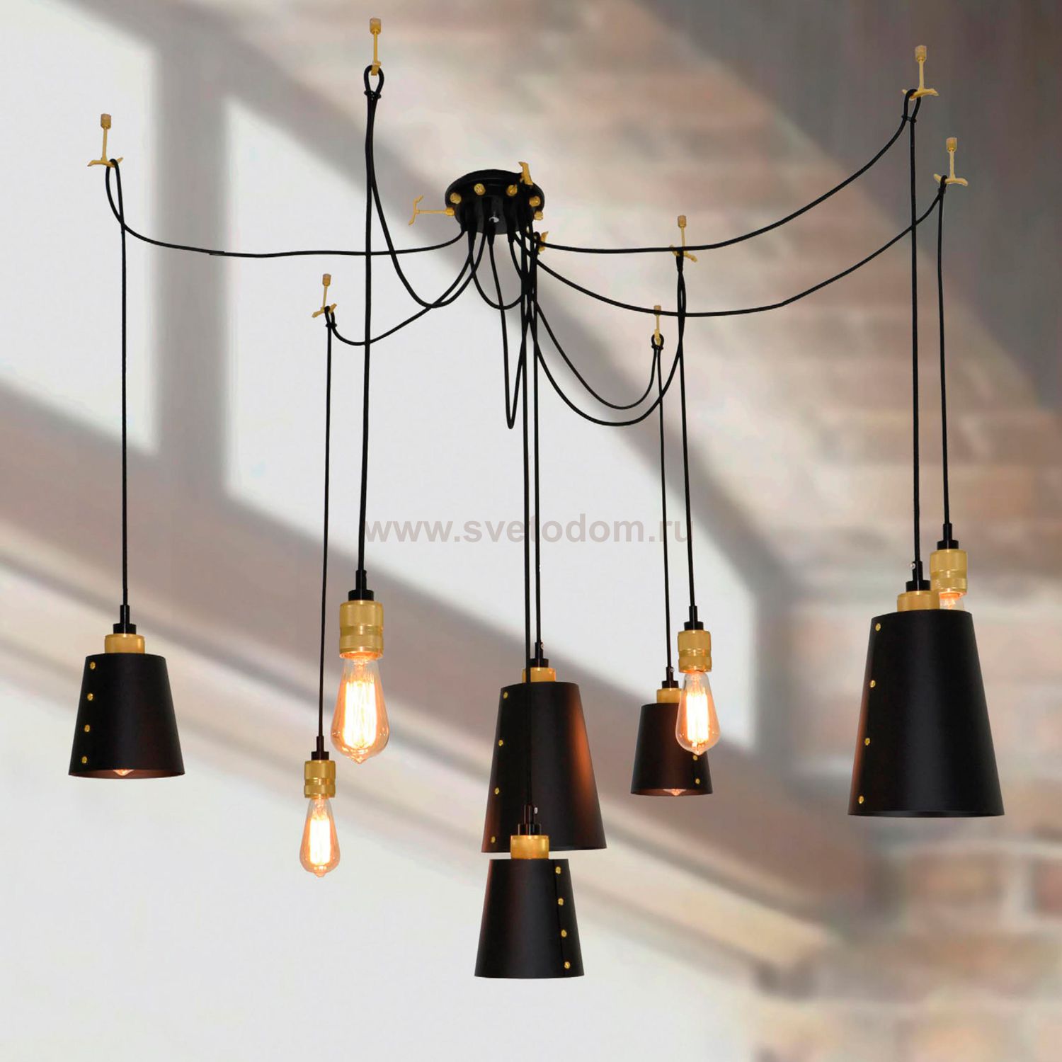 Комбинированный паук с девятью ножками. Половина ножек оканчиваются металлическим глухим плафоном, а оставшиеся просто ретро-лампой. Здорово.