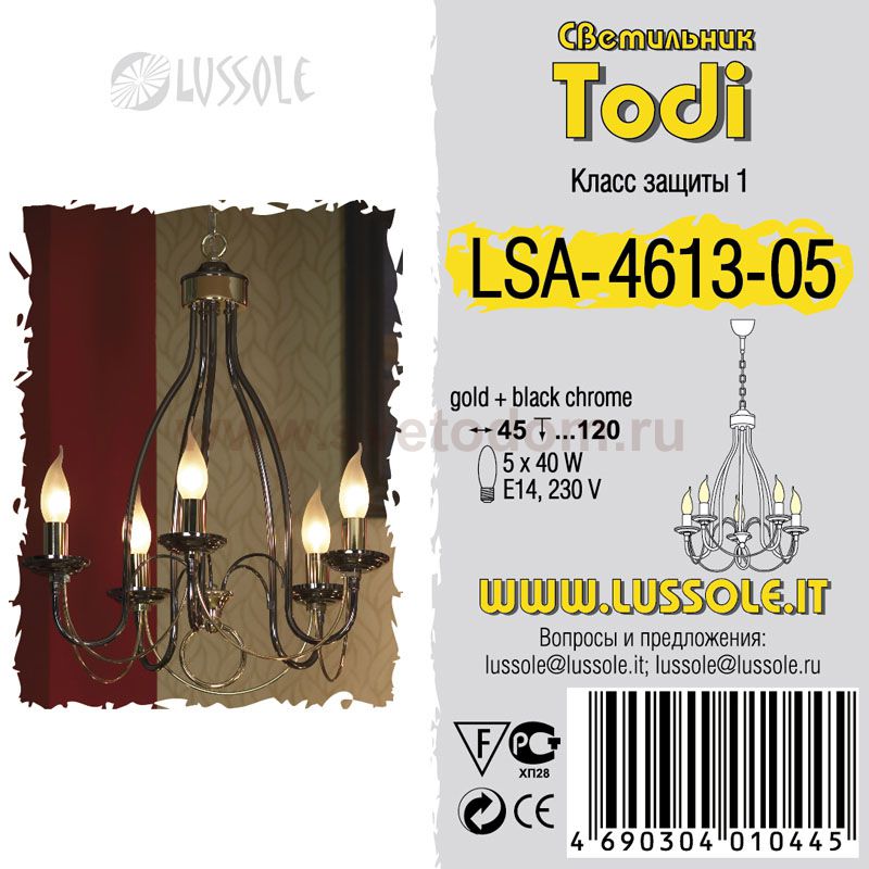 Компания «Светодом» предлагает широкий ассортимент люстр от известных производителей. Представленные в нашем каталоге товары выполнены из современных материалов и обладают отличным качеством. Благодаря широкому ассортименту Вы сможете найти у нас люстру под любой интерьер. Мы предлагаем как классические варианты, так и современные модели, отличающиеся лаконичностью и простотой форм. Стильная люстра Lussole LSA-4613-05 станет украшением любого дома. Эта модель от известного производителя не оставит равнодушным ценителей красивых и оригинальных предметов интерьера. Люстра Lussole LSA-4613-05 обеспечит равномерное распределение света по всей комнате. При выборе обратите внимание на характеристики, позволяющие приобрести наиболее подходящую модель. Купить понравившуюся люстру по доступной цене Вы можете в интернет-магазине «Светодом». |