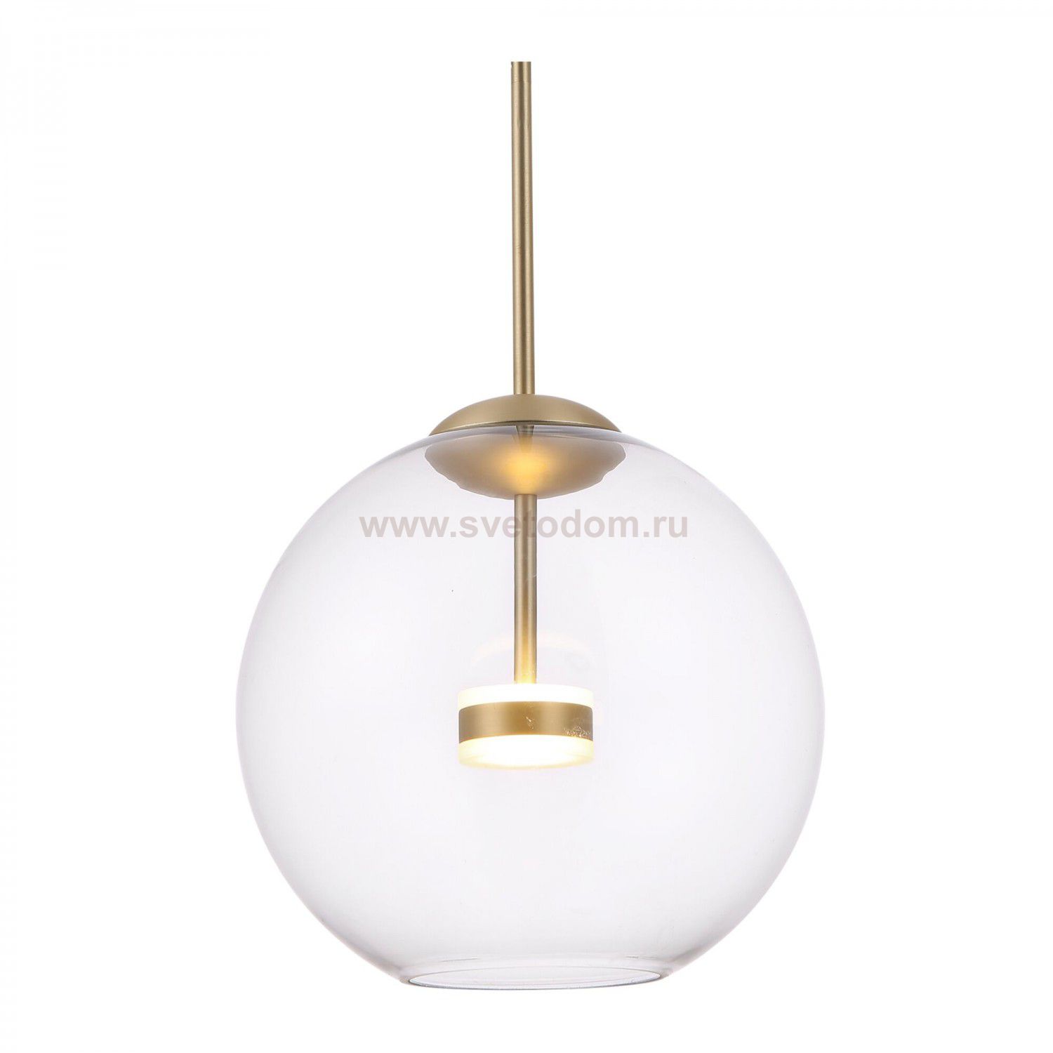 Материал арматуры – металл, цвет – матовое золото. Плафон из прозрачного выдувного стекла. LED-источник света. Регулируемая высота.