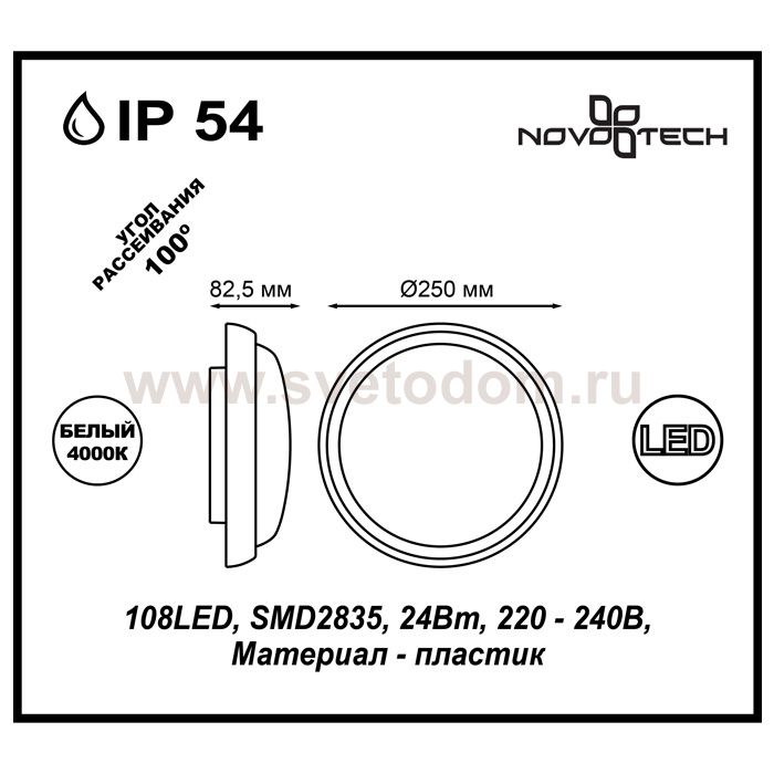 ![]() Светильник ландшафтный светодиодный настенно - потолочного монтажа Novotech 358015 OPAL 2420 руб.