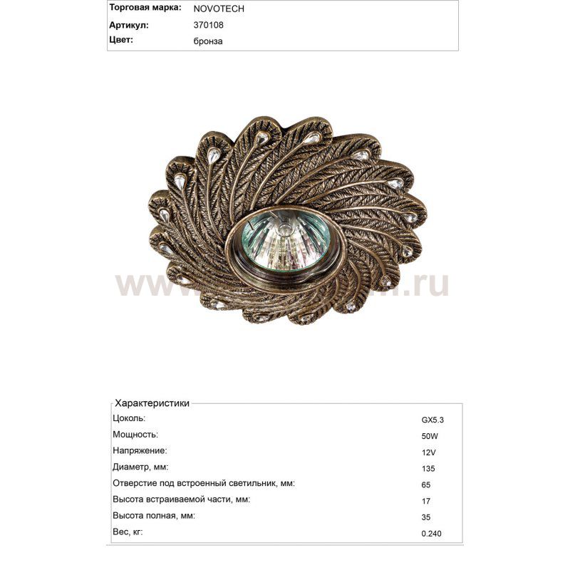Декоративный встраиваемый светильник модели Novotech 370108 из серии PATTERN отличается следующим качеством: Корпус светильника произведён из натурального камня песчаника. Его главные преимущества - долговечность, уникальные экологические и бактерицидные качества, чистота цвета, однородность структуры, малое влагопоглощение. Декоративные стразы сделаны из хрусталя. Он обладает высоким показателем плотности, прозрачности и блеска. Благодаря содержанию свинца (не менее 30%) и определённому подбору углов, образуемых гранями, изделия из хрусталя отличаются необыкновенно яркой, многоцветной игрой света, чарующей магией красоты, совершенства и роскоши.