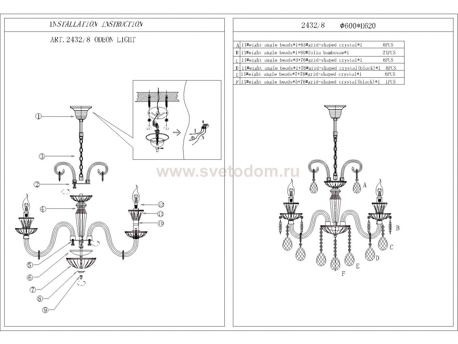 Хрустальный шедевр привнесёт особое благородство в домашний мир уюта и комфорта. Только представьте, насколько исключительным станет сияние Вашего интерьера, когда оно наполнится яркими лучами блеска во всём его великолепии. Подвесная люстра Odeon light 2432/8 – это настоящий подарок для ценителей роскошного света! Для этого постарались итальянские дизайнеры и мастера, которые придали каждому изгибу шедевра элегантные формы и грациозные изгибы, исполнив их в лаконичной чёрно-белой цветовой концепции. Престижный выбор в пользу хрустальной классики! Ваш интерьер станет отдельным миром элегантной эстетики, дарящей наслаждение головокружительной игрой блеска в роскошном обрамлении.