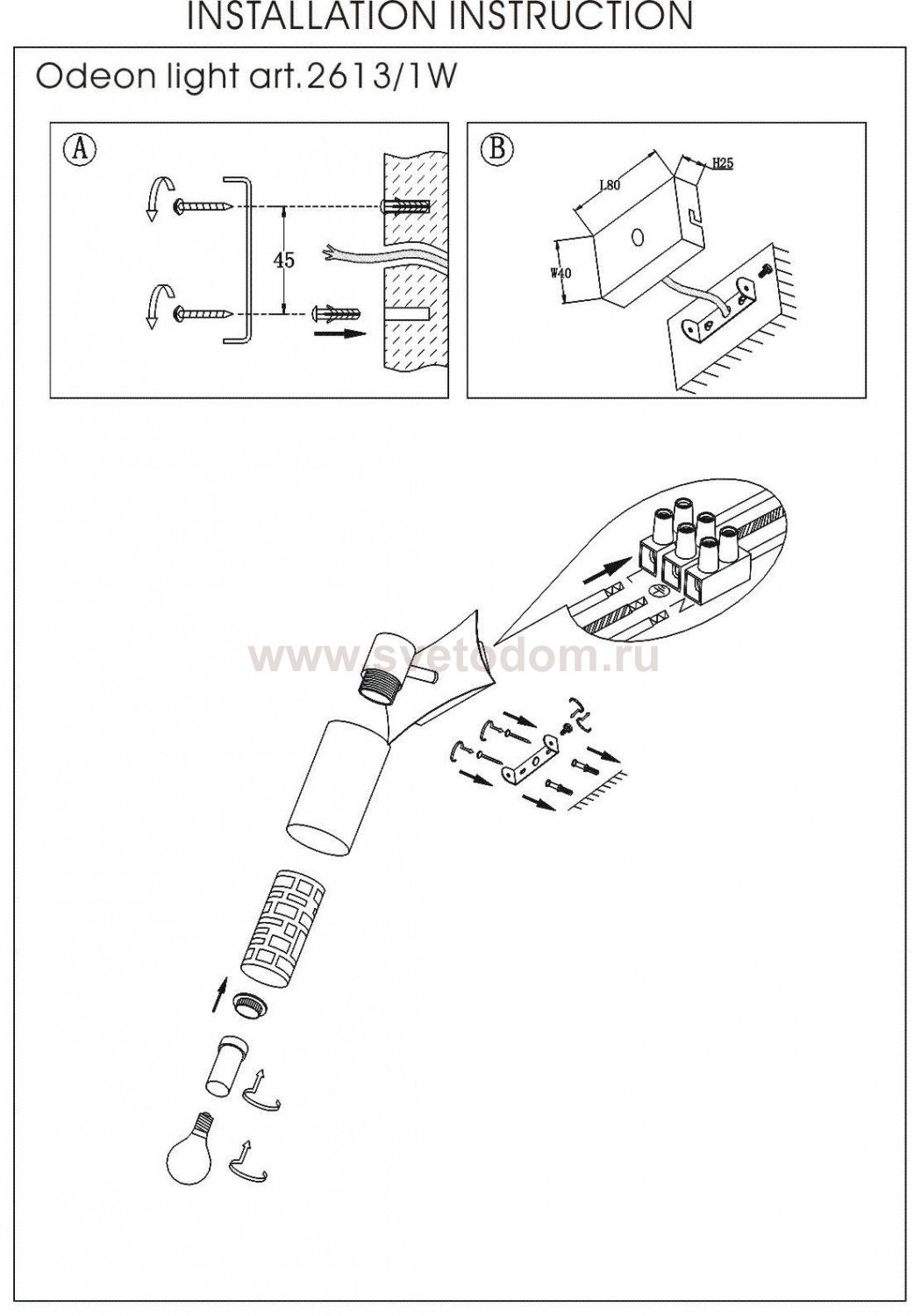 Светильники-споты – это оригинальные изделия с современным дизайном. Они позволяют не ограничивать свою фантазию при выборе освещения для интерьера. Такие модели обеспечивают достаточно качественный свет. Благодаря компактным размерам Вы можете использовать несколько спотов для одного помещения. Интернет-магазин «Светодом» предлагает необычный светильник-спот Odeon light 2613/1W по привлекательной цене. Эта модель станет отличным дополнением к люстре, выполненной в том же стиле. Перед оформлением заказа изучите характеристики изделия. Купить светильник-спот Odeon light 2613/1W в нашем онлайн-магазине Вы можете либо с помощью формы на сайте, либо по указанным выше телефонам. Обратите внимание, что у нас склады не только в Москве и Екатеринбурге, но и других городах России.