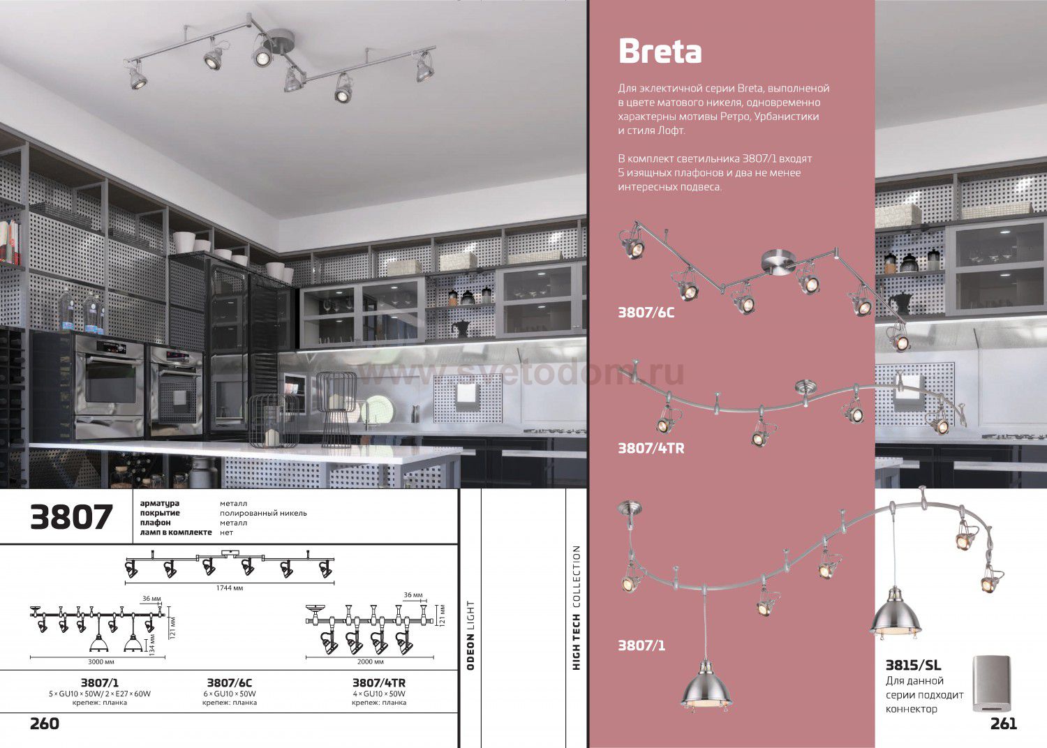 Для эклектичной серии Breta, выполненой в цвете глянцевого никеля, одновременно характерны мотивы Ретро, Урбанистики и стиля Лофт. Светильник комплектуется подвесами как для крепления на треке, так и для самостоятельного использования.