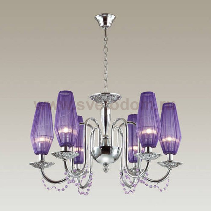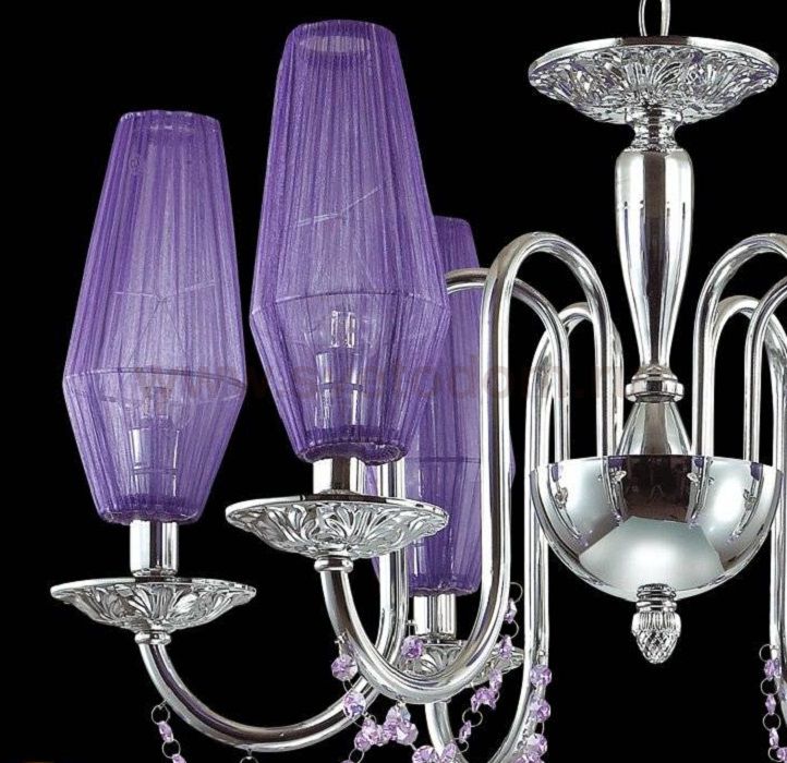 Люстра 3920 / 6 линии Felicia выполнена в классическом стиле. Хромовое основание светильника дополняют утонченные абажуры ярко - фиолетового цвета, изящный металлический декор, а также хрусталь высшего качества, повторяющий цвет абажура. Все это придает светильнику роскошный, яркий, но в то же время очень нежный и утонченный образ. Цоколь E14. Мощность 6*40W. Нет ламп в комплекте.