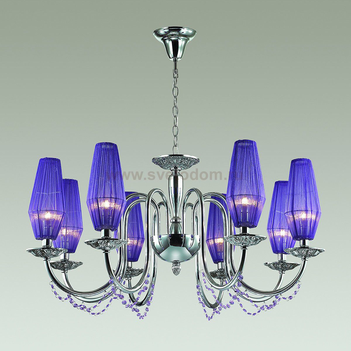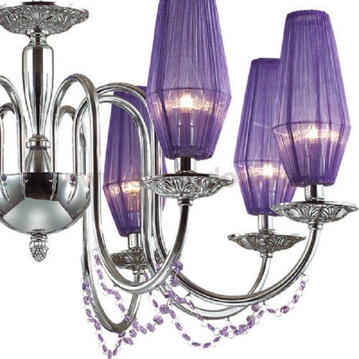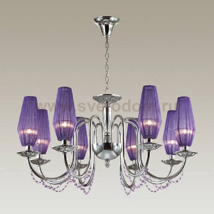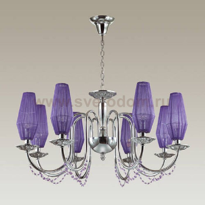Люстра 3920 / 8 линии Felicia выполнена в классическом стиле. Хромовое основание светильника дополняют утонченные абажуры ярко - фиолетового цвета, изящный металлический декор, а также хрусталь высшего качества, повторяющий цвет абажура. Все это придает светильнику роскошный, яркий, но в то же время очень нежный и утонченный образ. Цоколь E14. Мощность 8*40W. Нет ламп в комплекте.