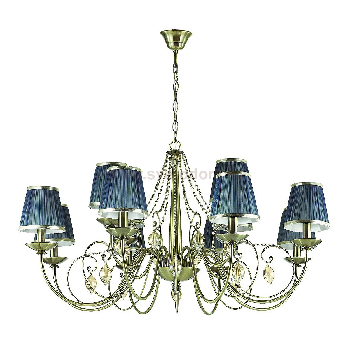 Великолепная люстра 3921 / 12 линии Niagara выполнена в классическом стиле. Очень богатое и изящное основание светильника выполнено в благородном бронзовом цвете и дополнено идеально сочетающимися по тону небольшими стеклянными шарами и тонкими бусами, грациозно ниспадающими и переливающимися изысканным глянцем. Завершает этот великолепный дизайн восхитительные абажуры из тонкой и полупрозрачной органзы невероятного темно - лазурного цвета, по краям деликатно украшенные тонкой тесьмой металлического оттенка. Этот элитный светильник станет настоящим украшением и достойным предметом интерьера. Цоколь Е14. Мощность 12*40W. Нет ламп в комплекте.