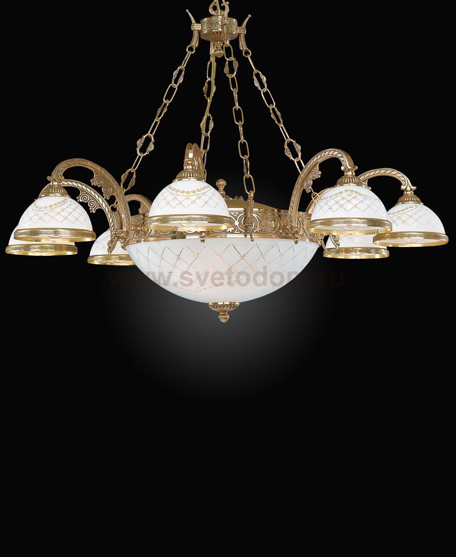 Классическая люстра производства итальянской фабрики Reccagni Angelo. Три лампы располагаются в центральном плафоне, остальные - по радиусу.