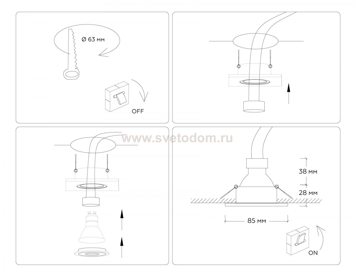 Данный размер указывает какое отверстие необходимо сделать для правильного монтажа. Зачастую светильники выбирают после ремонта и сделанных монтажных отверстий, тогда подбор осуществляется строго в размер +/- 2-5мм.