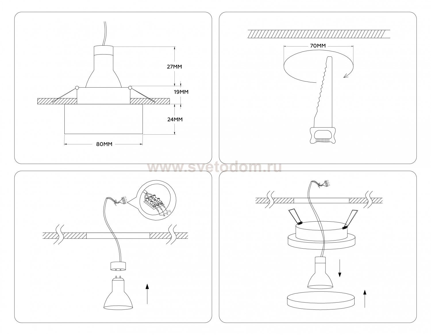 Данный размер указывает какое отверстие необходимо сделать для правильного монтажа. Зачастую светильники выбирают после ремонта и сделанных монтажных отверстий, тогда подбор осуществляется строго в размер +/- 2-5мм.