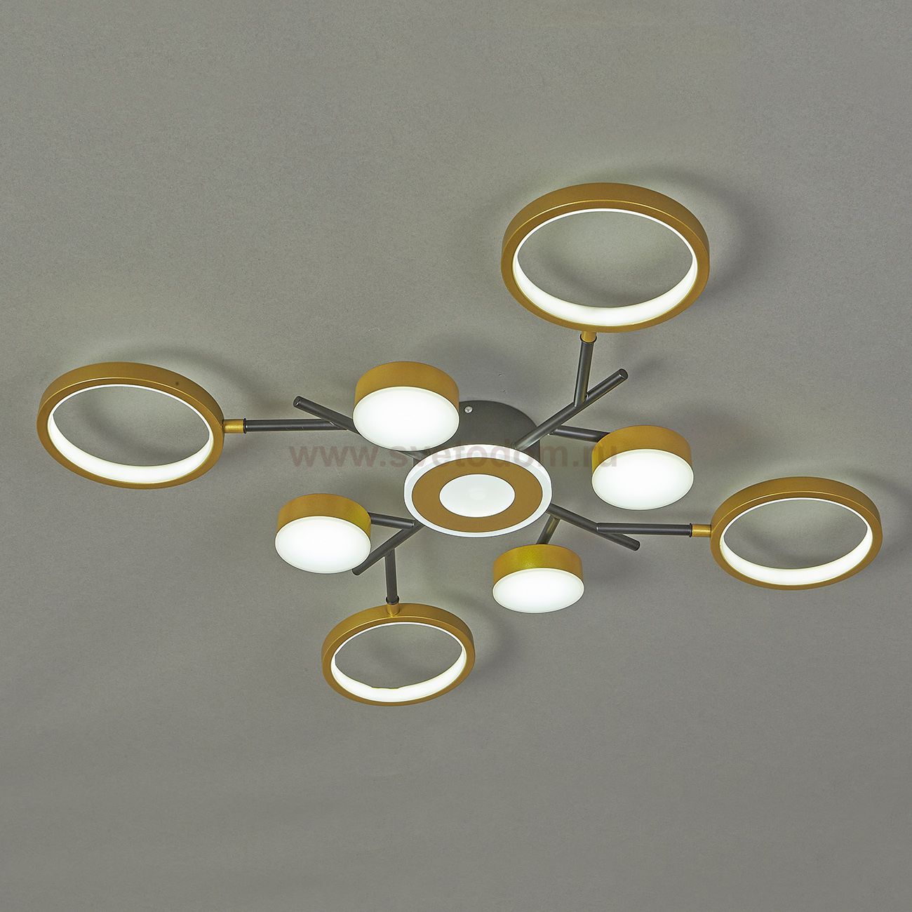 Светодиодный светильник 97Вт, 5049Лм, 3000К-5700К, Ra>80, ИК-пульт, плавная регулировка мощности, изменение цветовой температуры, ночник, металл/акрил, чёрный/золото