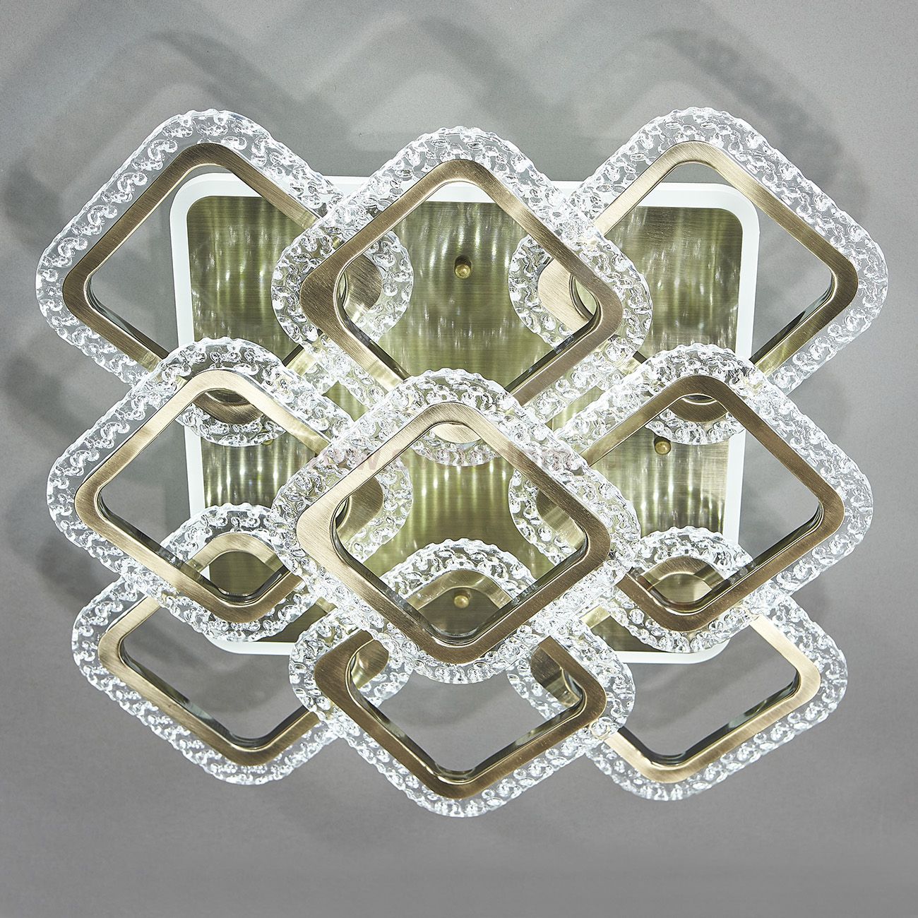 Светодиодный светильник 135Вт, 6750Лм, 3000К-5700К, Ra>80, ИК-пульт, плавная регулировка мощности, изменение цветовой температуры, ночник, металл/акрил, золото/прозрачный