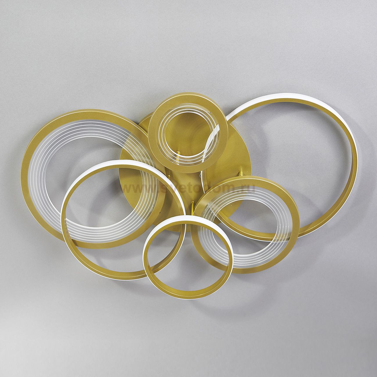 Светодиодный светильник 149Вт, 8324Лм, 3000К-5700К, Ra>80, ИК-пульт, плавная регулировка мощности, изменение цветовой температуры, ночник, металл/акрил, золото