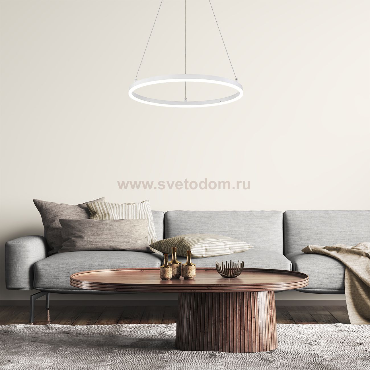 Подвесной светодиодный светильник 43Вт, 3136Лм, 3000-6500К, Ra>80, плавная регулировка мощности, изменение цветовой температуры, ночник, управление со смартфона, металл/акрил, белый