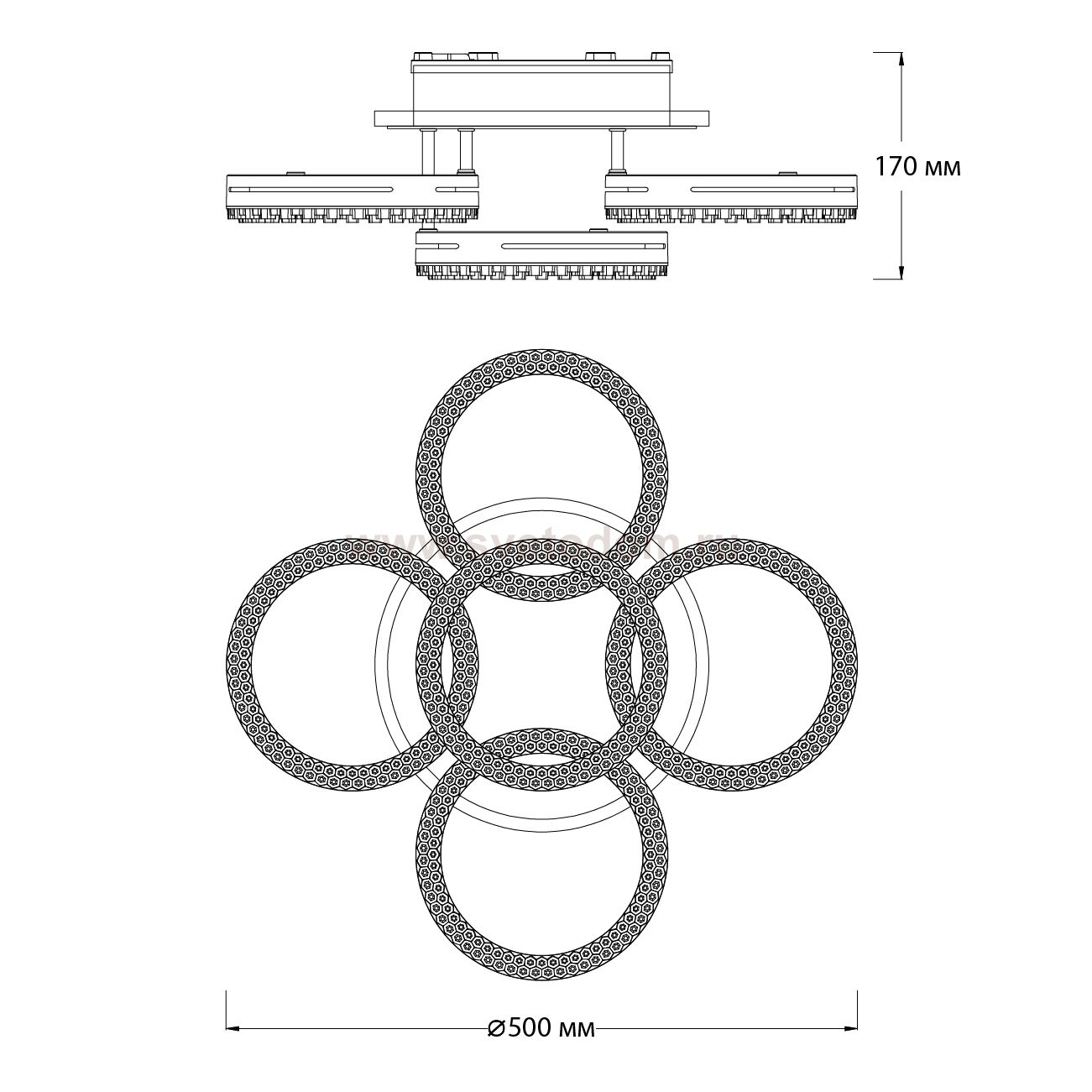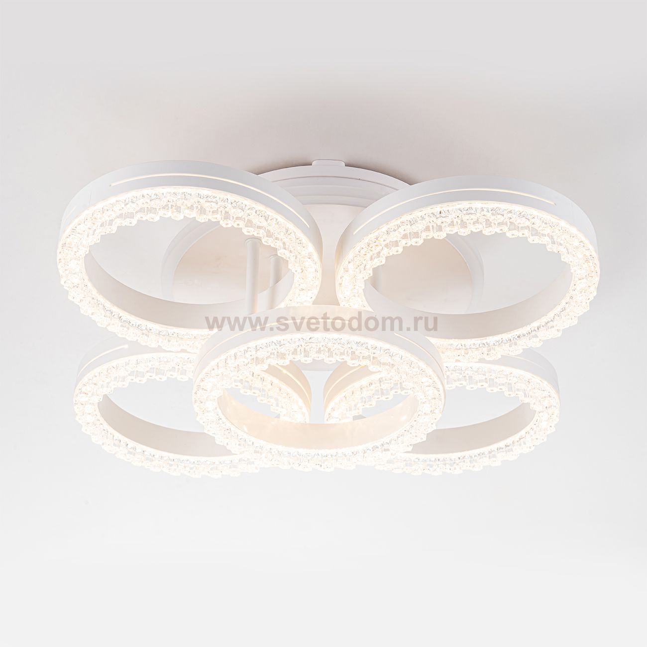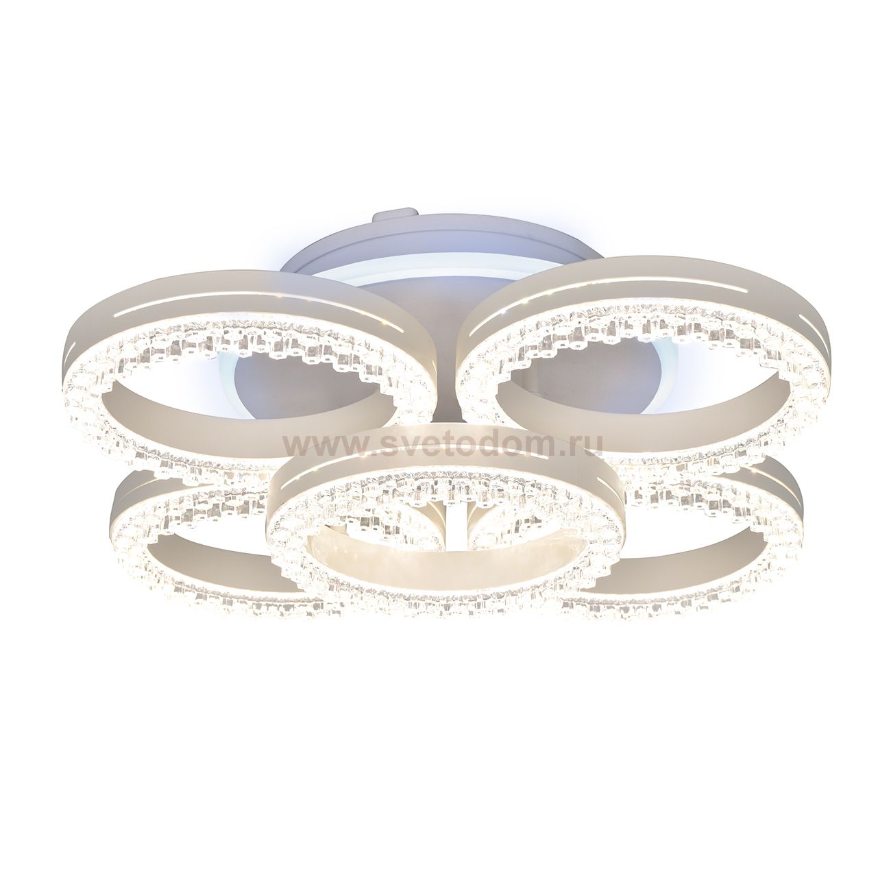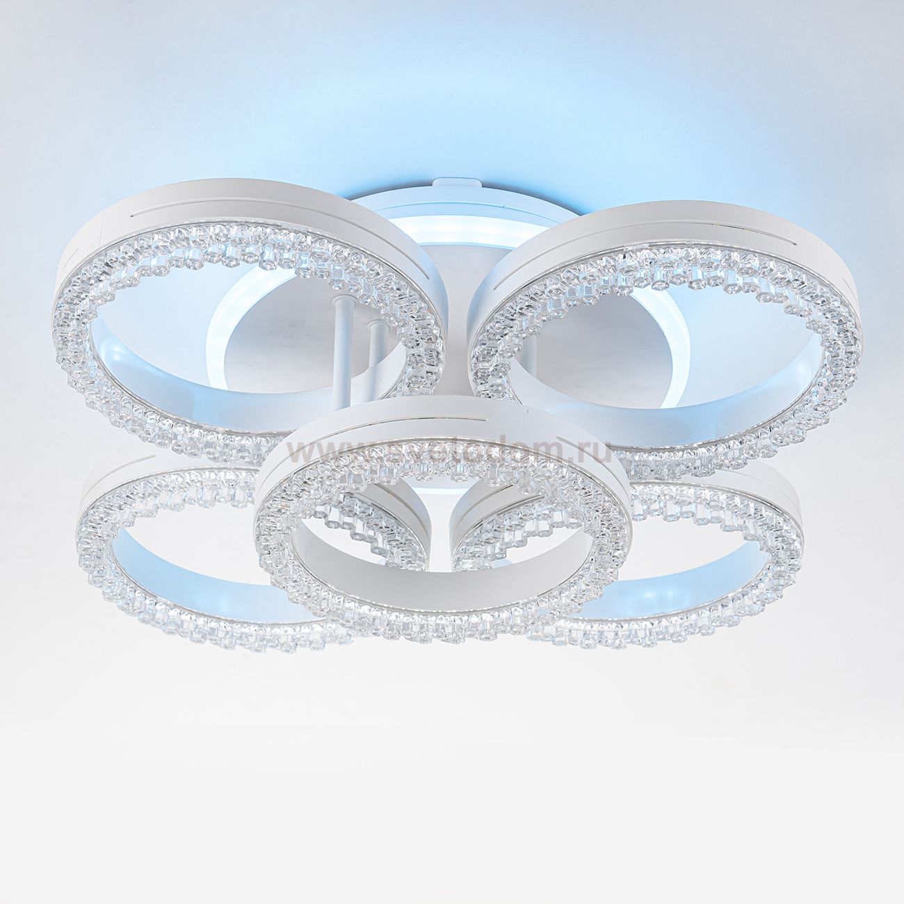 Умный светодиодный светильник 86Вт, 6333Лм, 3000К-6000К, Ra>80, ИК-пульт, плавная регулировка мощности, изменение цветовой температуры, управление со смартфона, MP3-Bluetooth (колонка 5Вт), RGB-подсветка, металл/акрил, белый