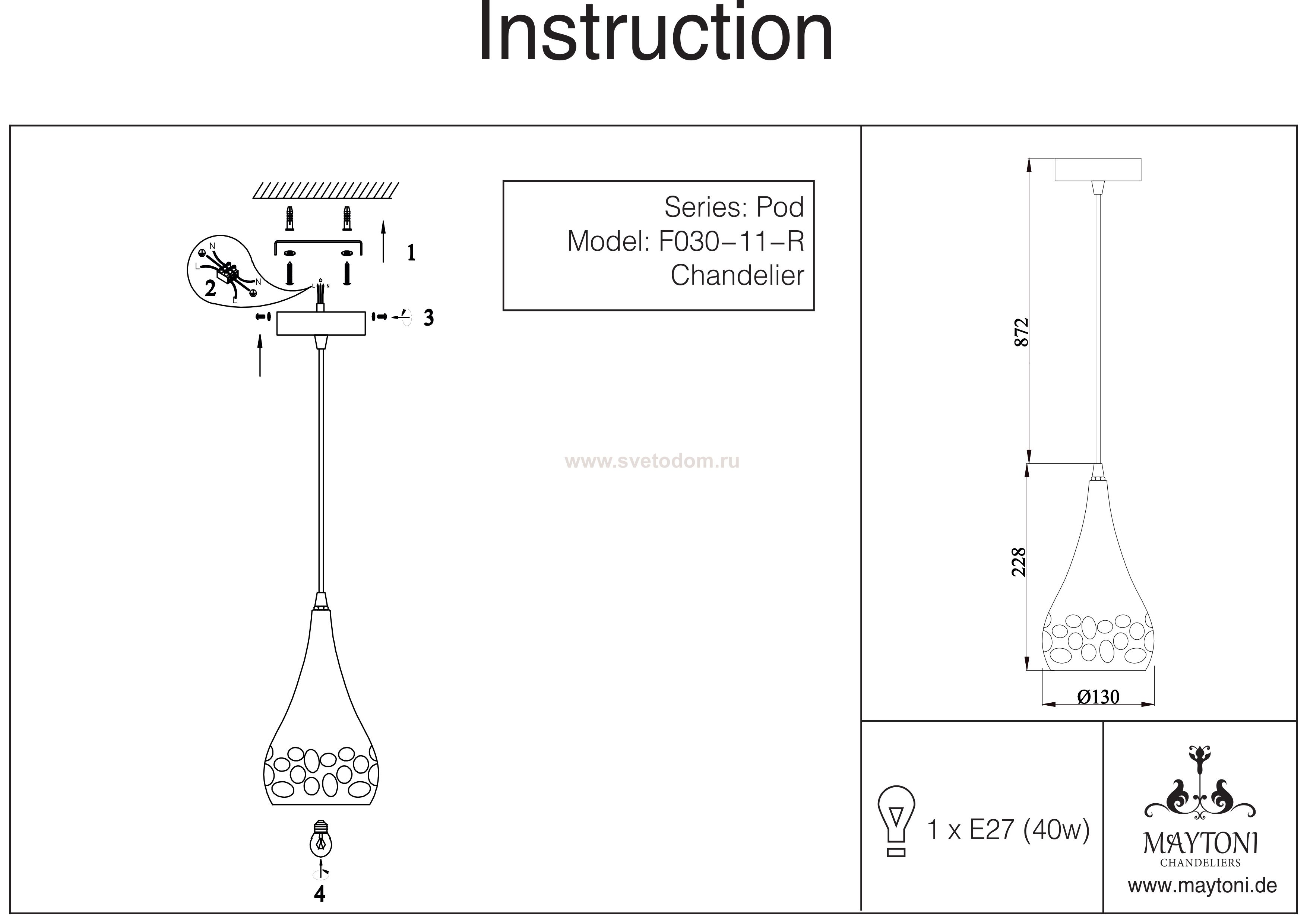 100 Отзывы Люстра Maytoni F030-11-R PodПока нет отзывов об этом товаре, напишите и он обязательно появится после модерации! Оставить свой отзывПохожие товары Другие товары магазина Фото