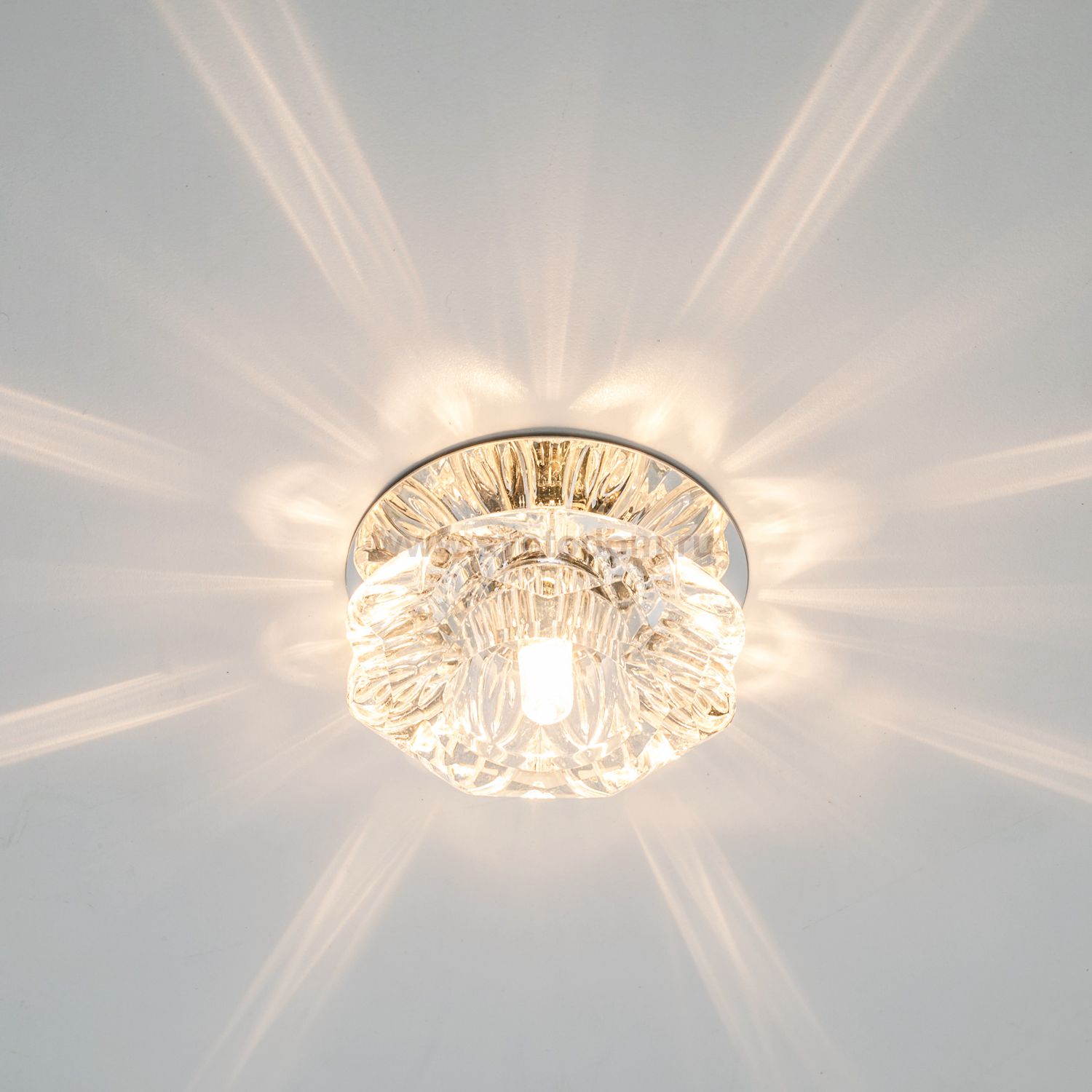 Точечный светильник F2055-S CR CL G4 от бренда ЭкономСвет. Каркас выполнен из материала металл, цвет хром. Цоколь G4 рассчитан на лампы максимальной мощности до 35 Вт, а максимальная площадь освещения составит до 2 м?.
