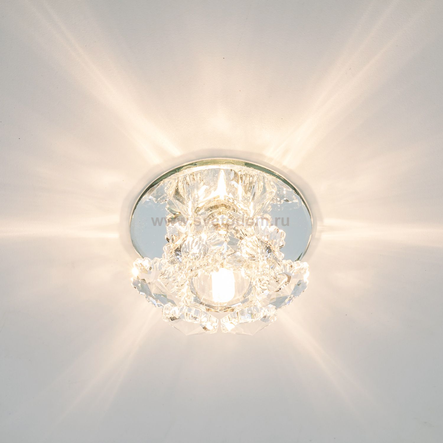 Точечный светильник F3580 WT CL от бренда ЭкономСвет. Каркас выполнен из материала стекло, цвет зеркальный. Цоколь G4 рассчитан на лампы максимальной мощности до 35 Вт, а максимальная площадь освещения составит до 2 м?.